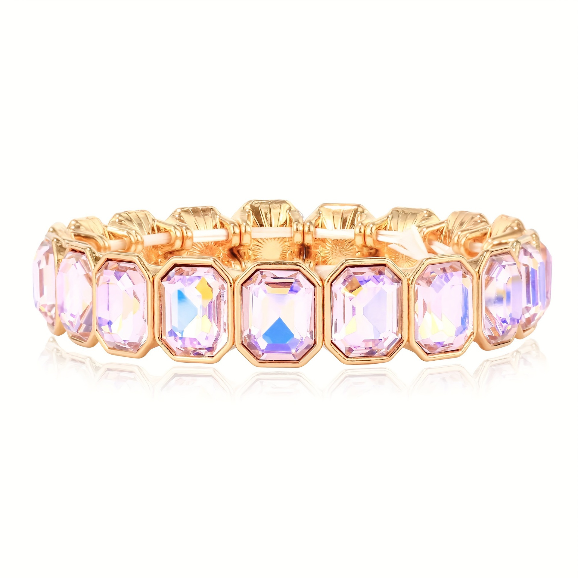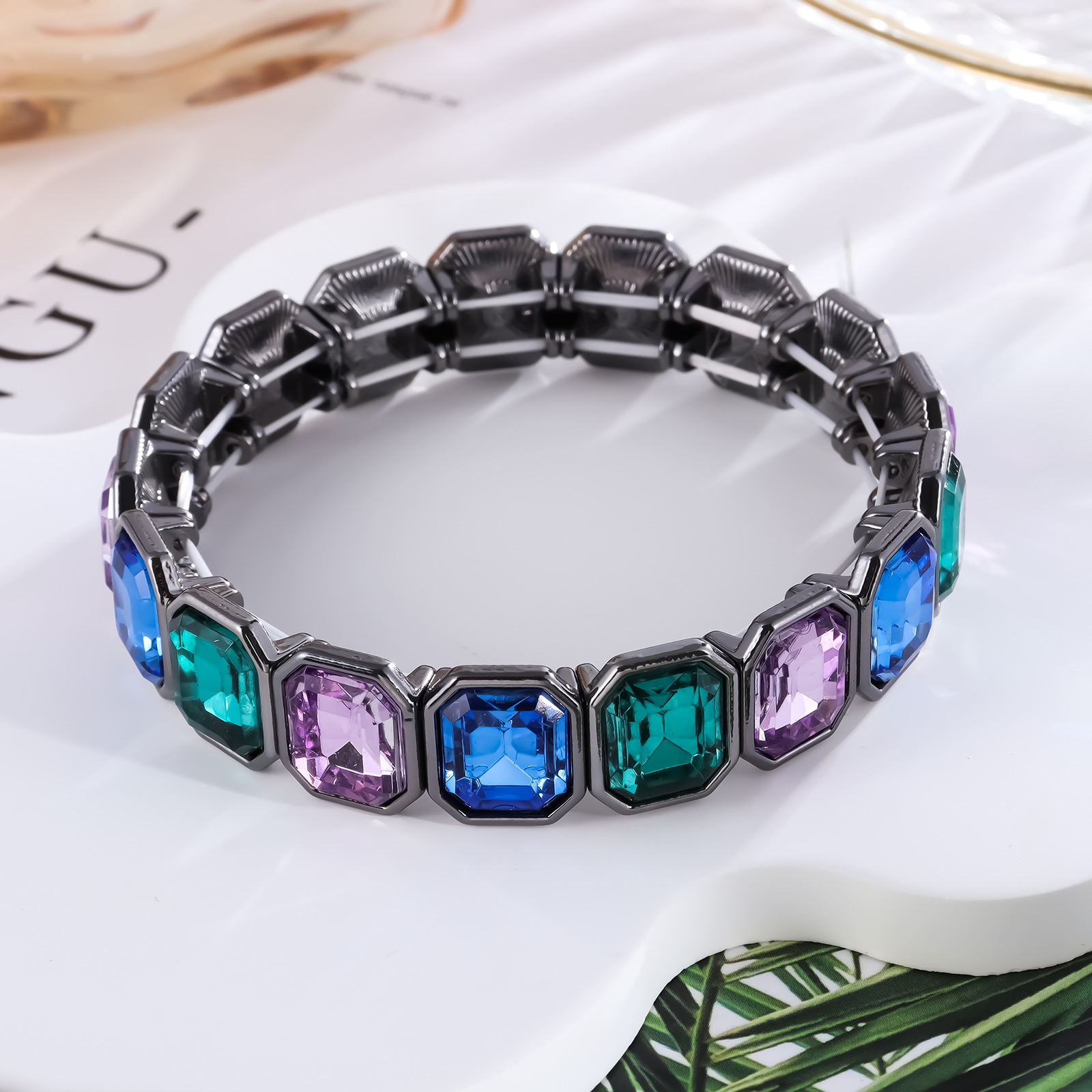 欧美时尚马卡龙色系多彩搪瓷几何四边形弹力手链女士时尚宝石手链