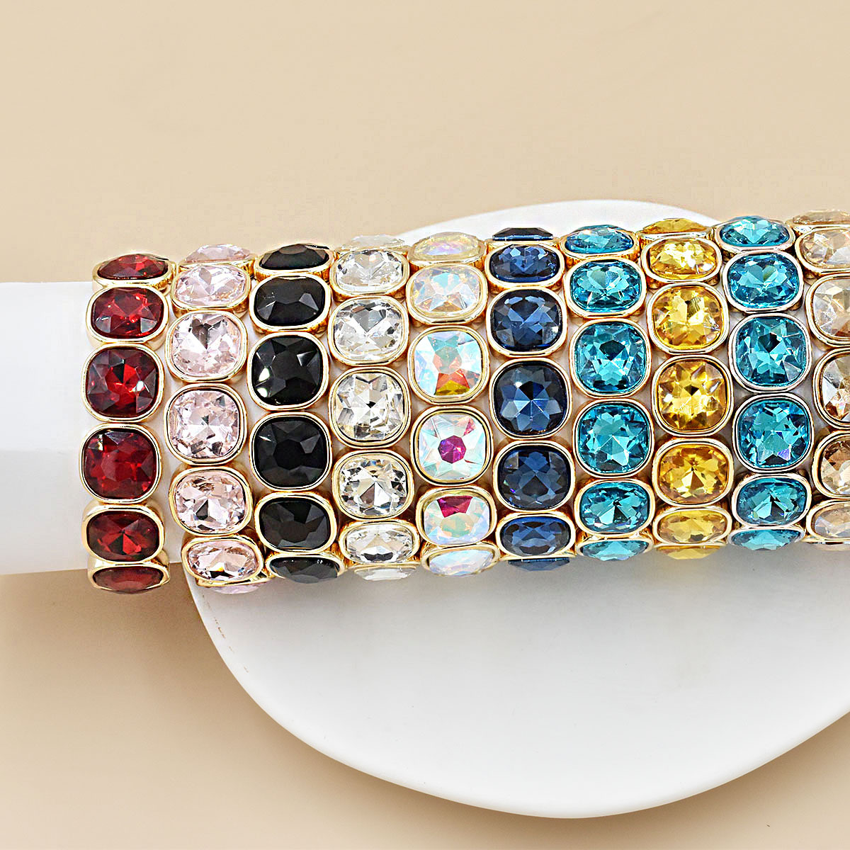 Amazon独立サイトはモカカラークリスタルスクエアダイヤモンドエナメルブレスレットを提供していますヨーロッパで人気のスタックカフブレスレット