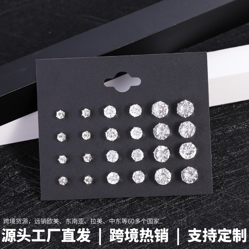 龍瑞wish越境新作 欧米風ジュエリーカード入り12ペアイヤリングセット ファッションクリスタルジルコニアイヤリングセット
