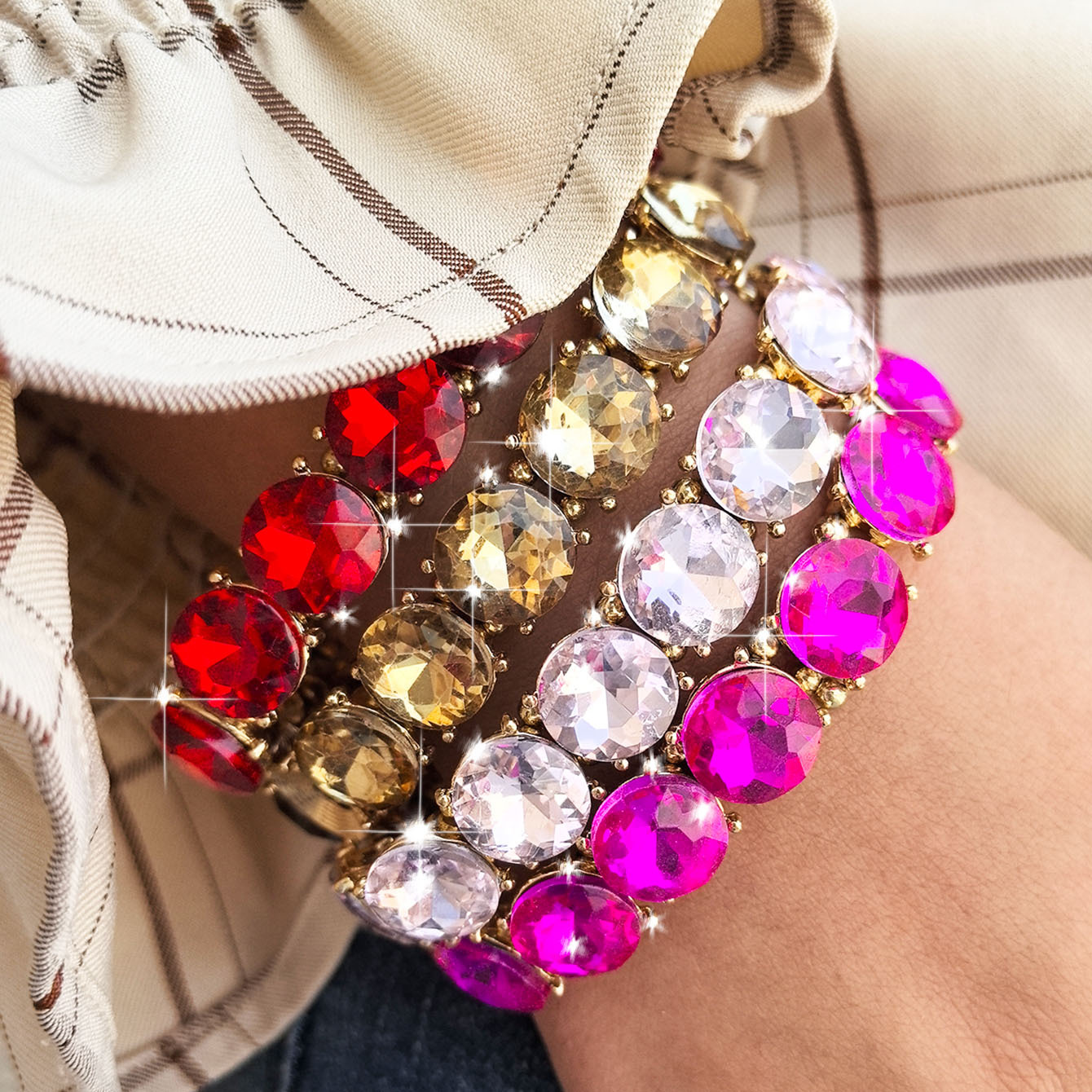 欧米で人気のファッション、誇張されたデザインのブレスレット、ガラスクリスタルとラインストーン、重ね付け可能、マルチカラー、シンプル、インスタ映え