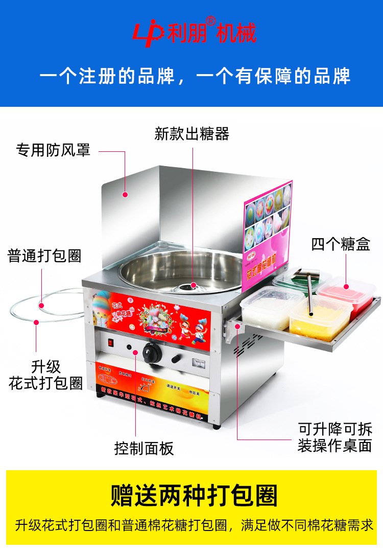 利朋商用ガス電動マシュマロ機花式露店用ベルト式高速花式マシュマロ機械