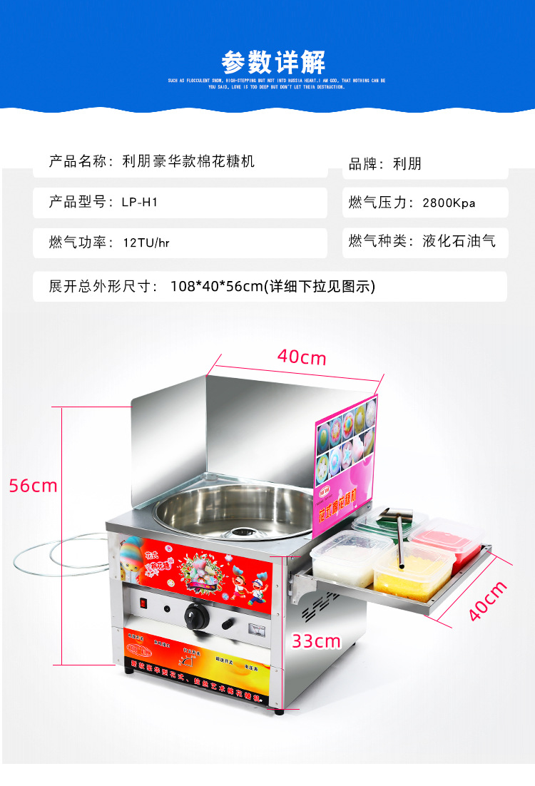 リーポン花式綿菓子機、屋台用、業務用、ガス式、電源不要、全自動、夜市向け、移動式、新型専用機