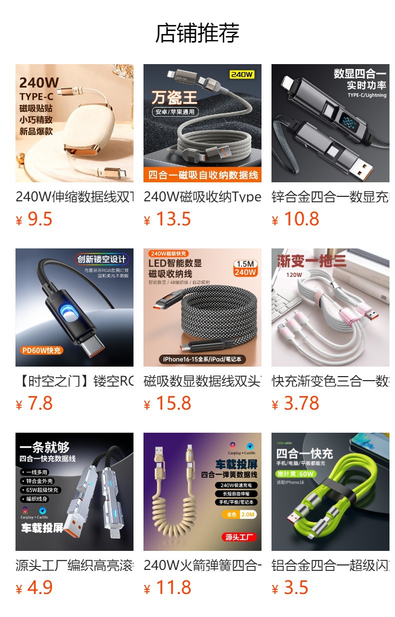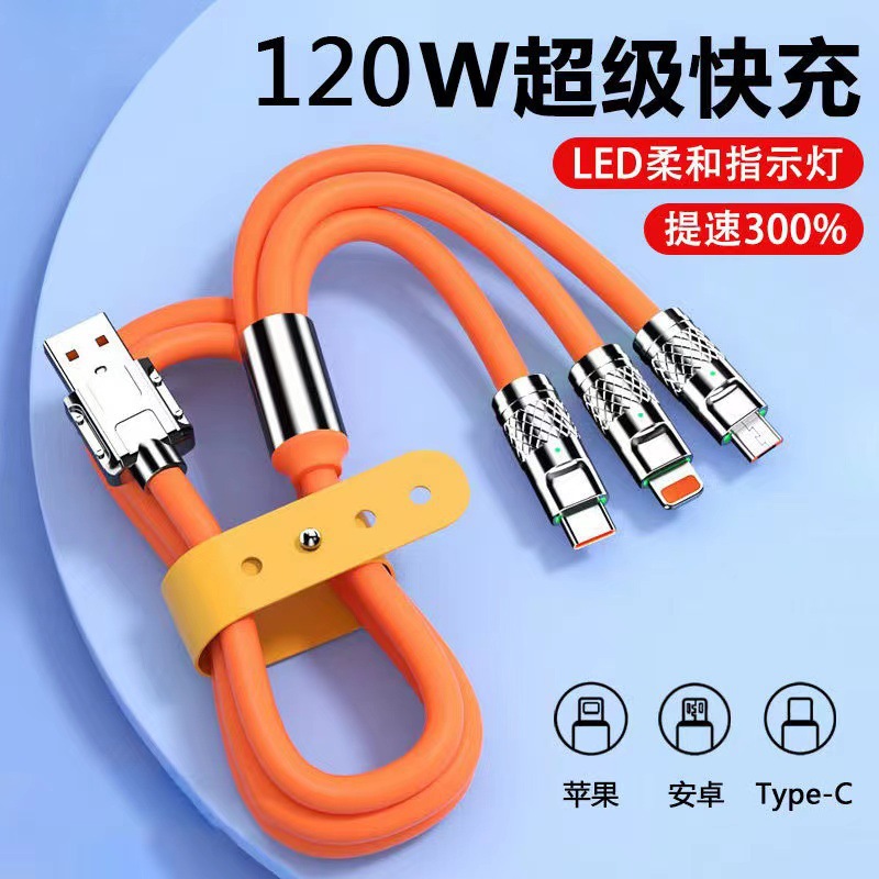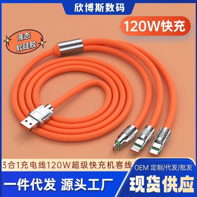 現物機客線三合一充電線一引き三120w超速充極客線適用TYPE-C