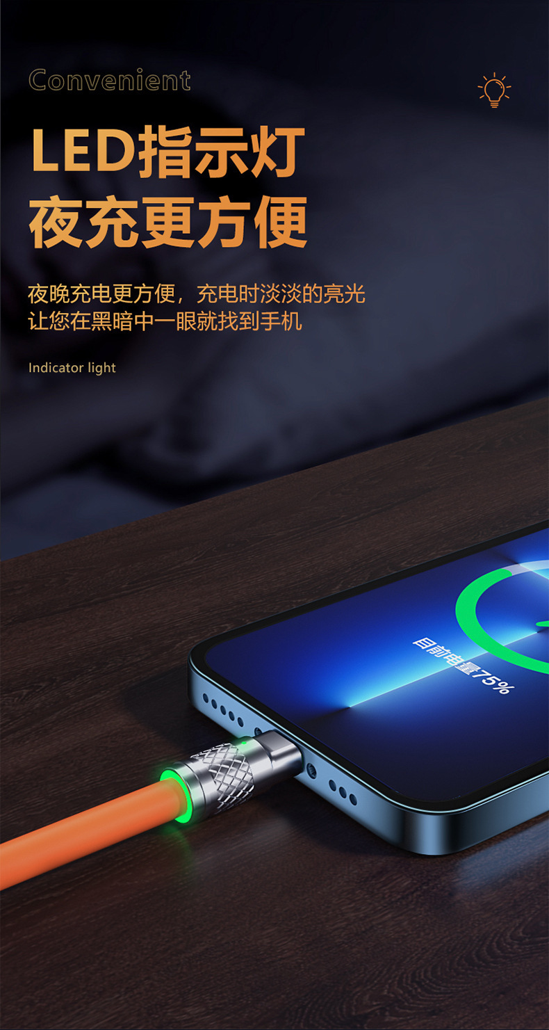 華を適用して超高速充電エルボ単線ケーブルUSBtype-c120W携帯電話充電データ伝送