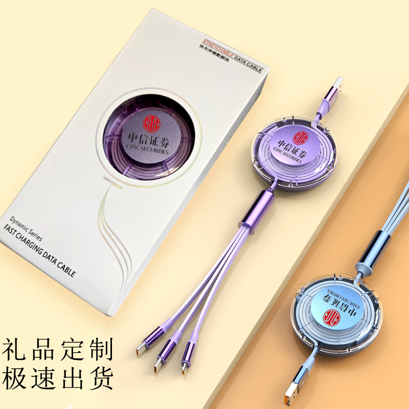 6a伸縮一モップ三ケーブル透明120wビジネスギフトロゴレーザー携帯電話充電ケーブル隠しブラケット