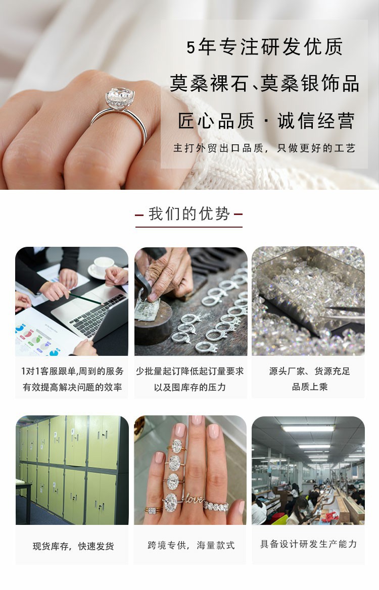 オーバルモアッサナイトレディースリングピジョンエッグ2.5カラットクラシック4本爪925スターリングシルバーメッキ18Kゴールドクロスボーダーサプライ