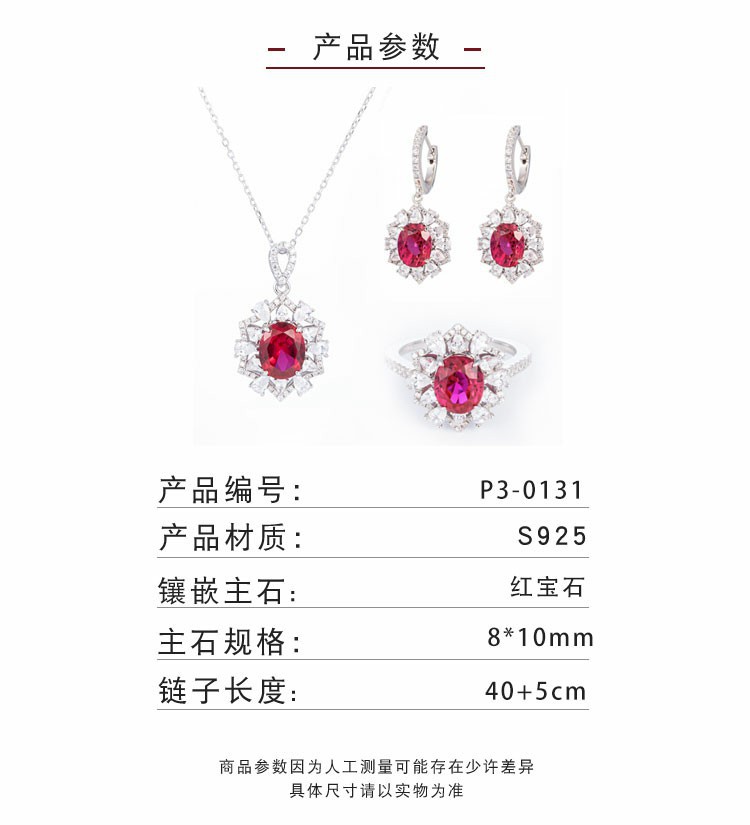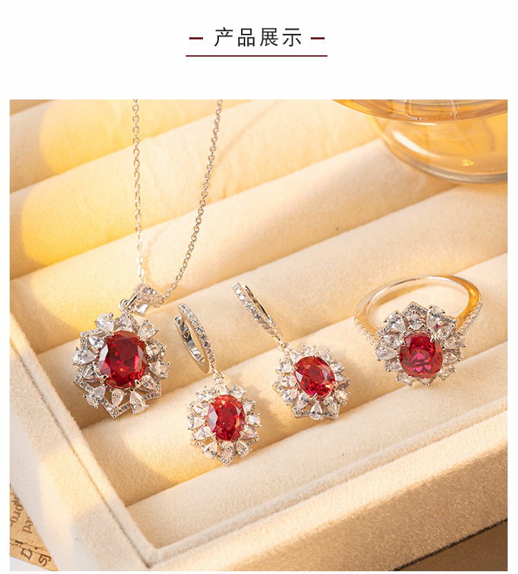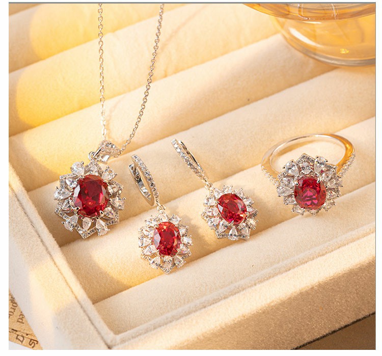 小紅書と同じスタイルの鳩卵型鳩血紅宝石セット、3カラットのペンダントとイヤリング、S925シルバーに18金メッキ