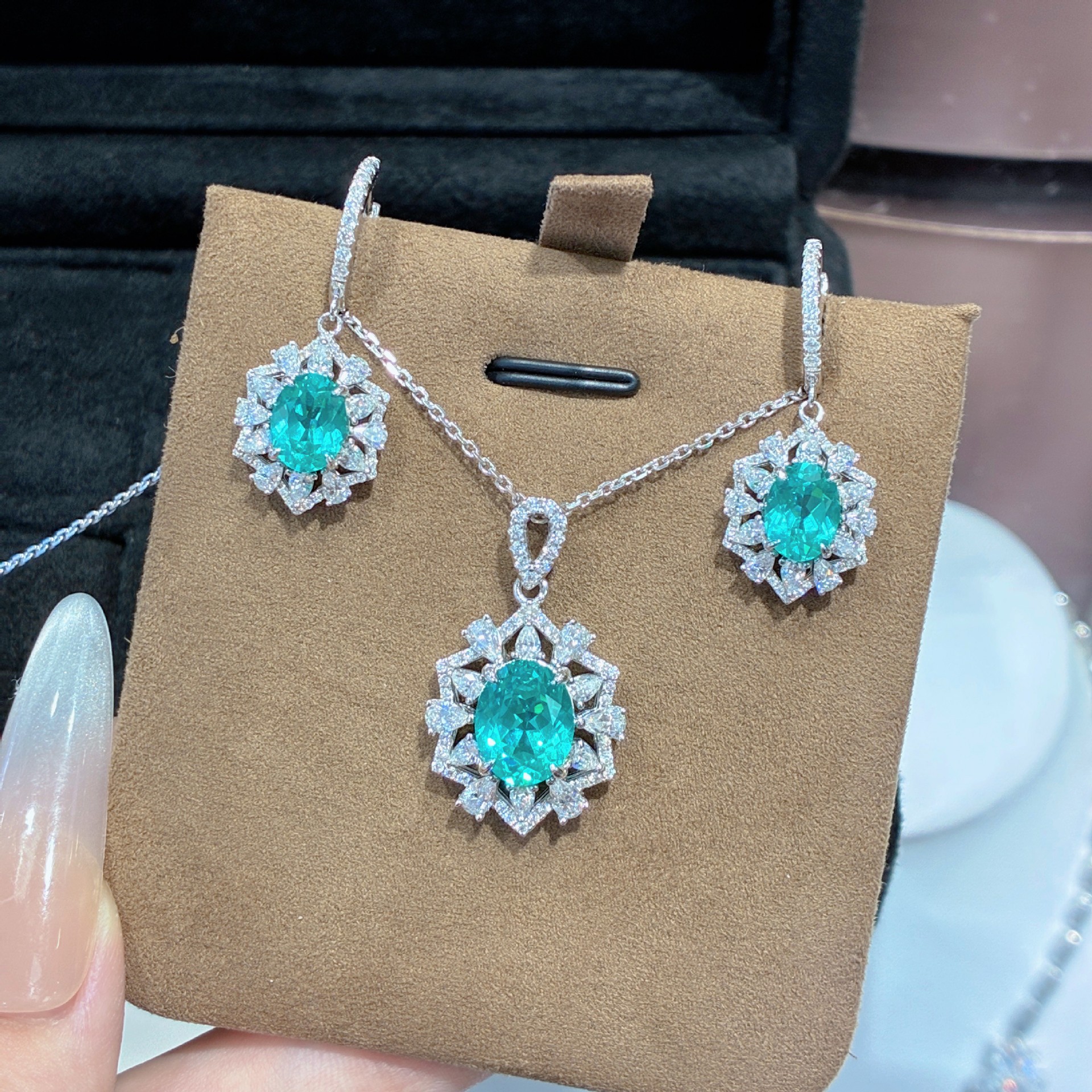 瑞钻珠宝新品抖音直播热卖培育帕拉伊巴色椭圆形套装S925银镀18K