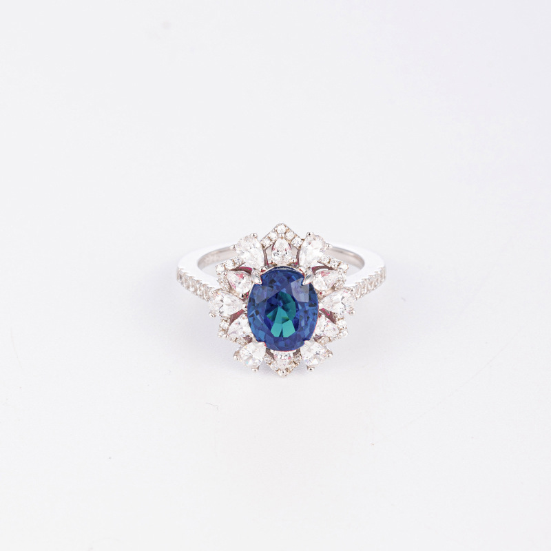 S925 シルバー育成ブルースピネルリング卵型 2 カラットレディースリングニッチハイエンドカラーパワー生放送ジュエリー卸売
