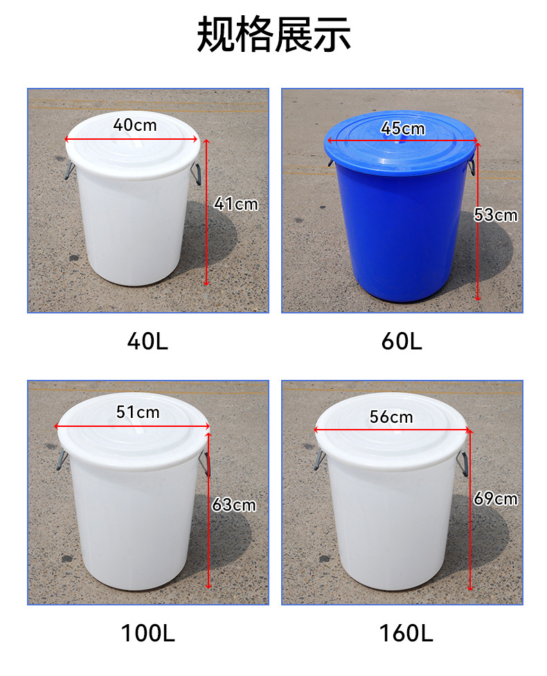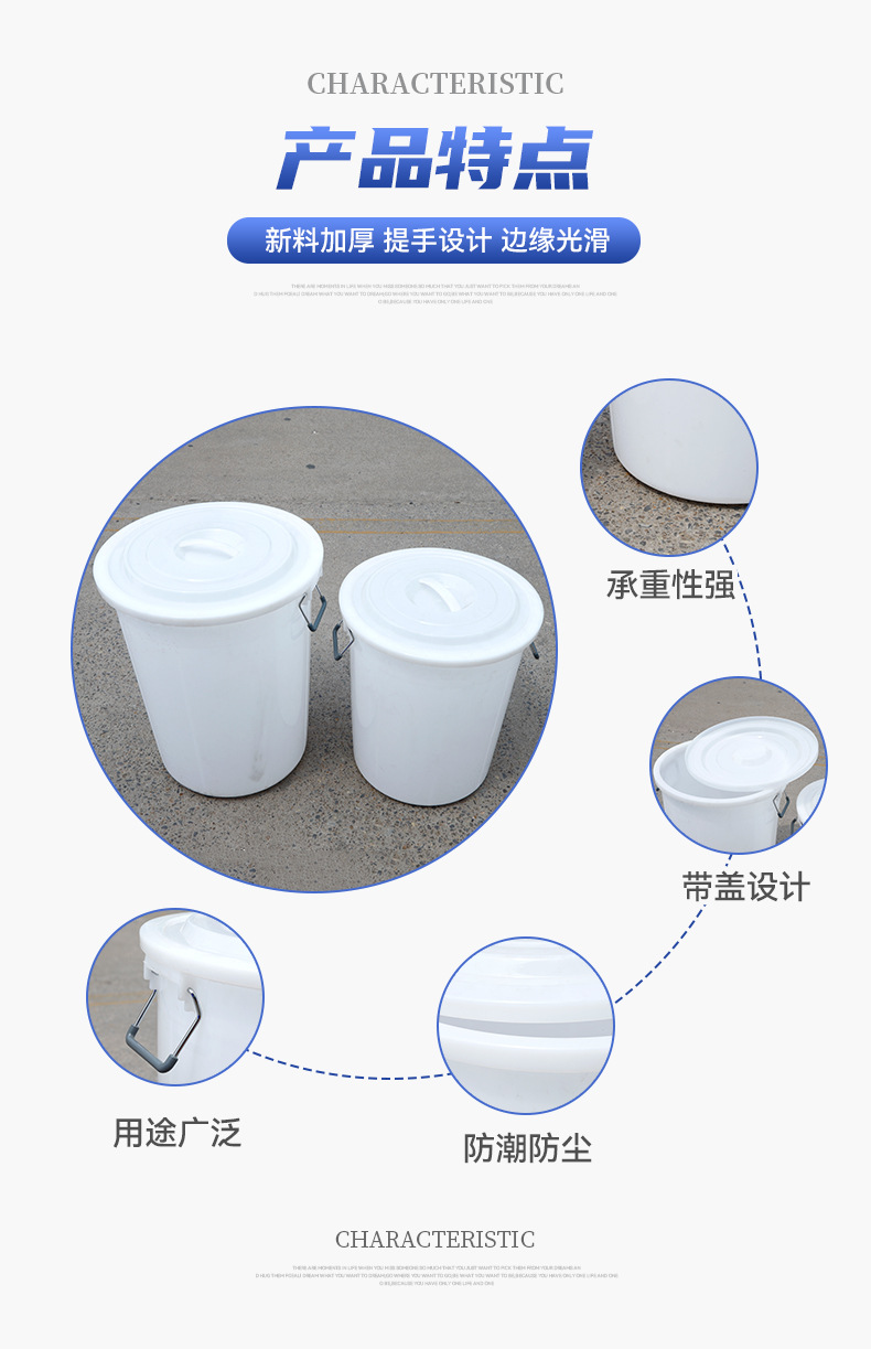 厚いプラスチック強化桶家庭用貯水桶蓋付き食品桶発酵漬物白色プラスチック桶大桶
