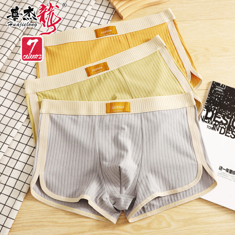 華傑龍直売夏型男性下着純色綿卸売り中腰潮男男性通気平角ズボン代発