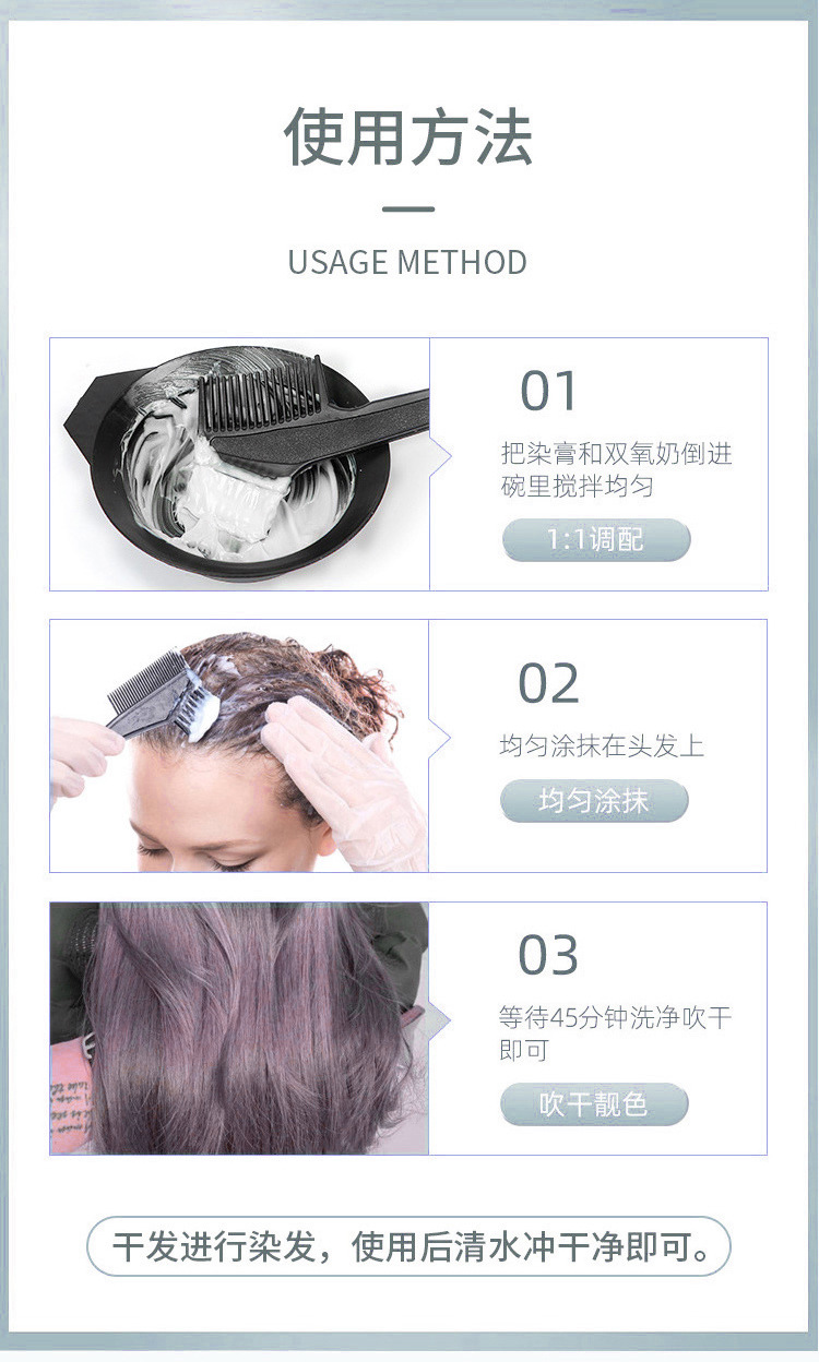 正味内容 100g(単剤) 注:単剤染料ペーストは直接着色することができないため、過酸化水素ミルクと一緒に使用する必要があります。