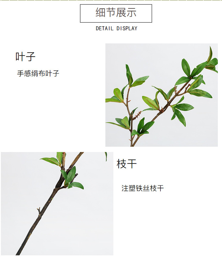 仿真绿植3叉小榆叶榆叶 婚庆仿真绿植插花装饰树叶室内家居造景
