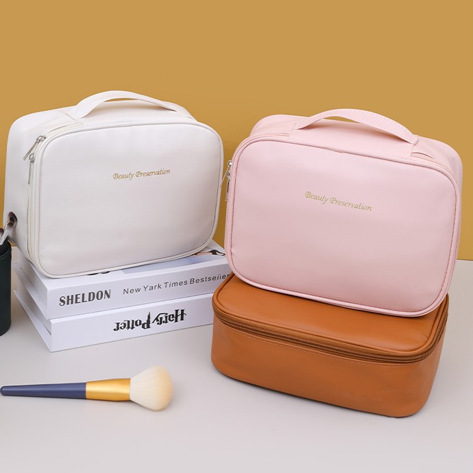 カスタマイズ可能な大容量高級感携帯用防水化粧品収納バッグ、旅行用インスタ映え洗面用具バッグ