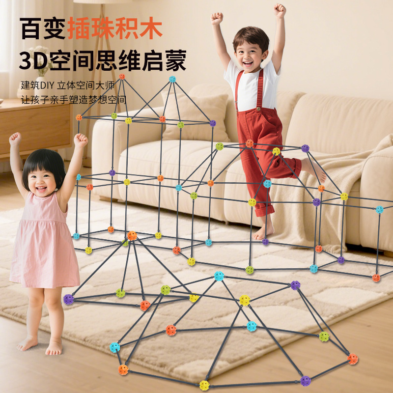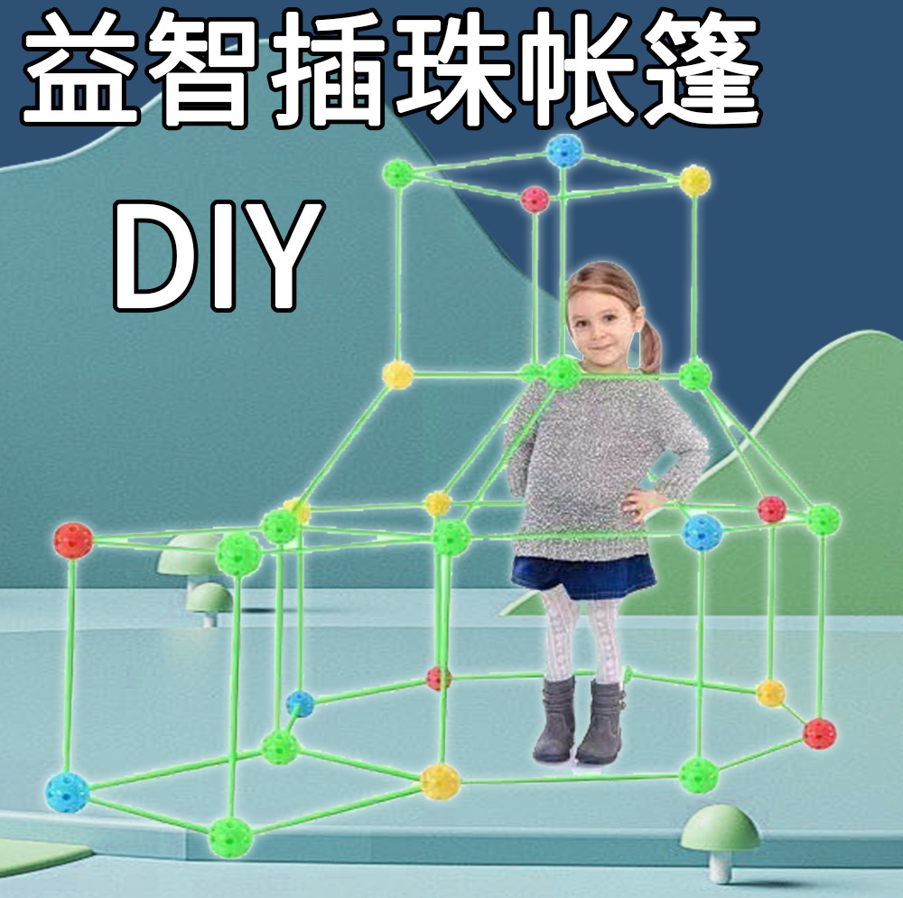 儿童diy插珠帐篷fort building kit跨境玩具帐篷积木帐篷拼插帐篷