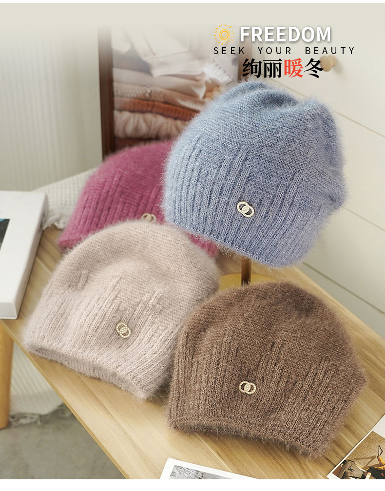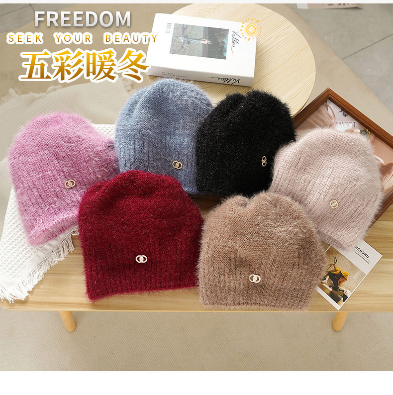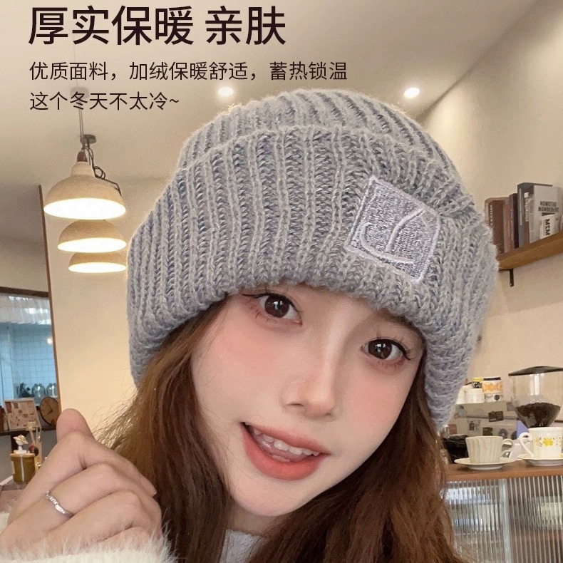 ニット帽子秋冬婦人帽子手作り二重厚さ小標スタッカ帽子保温毛糸帽子冬帽子