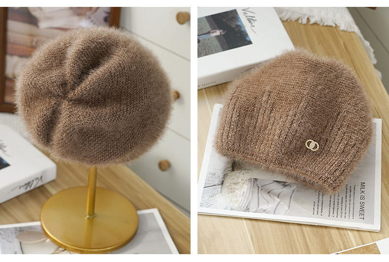 A秋冬堆堆帽双层加厚编织保暖针织帽女士大头围百搭帽子画家帽