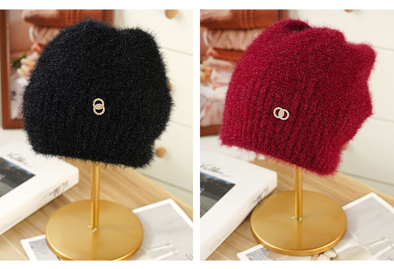 2025年 ダブルレイヤー スナックルファー ダイヤモンドロゴ入り おしゃれで万能な暖かいパイル帽 ベレー帽 韓国風ニット帽