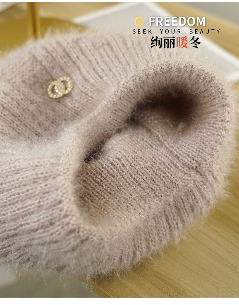 2025年二重層リスベルベットダイヤモンドロゴ付きファッショナブルで多用途な暖かいパイル帽子、包頭帽子、ベレー帽、韓国風ニットベレー帽