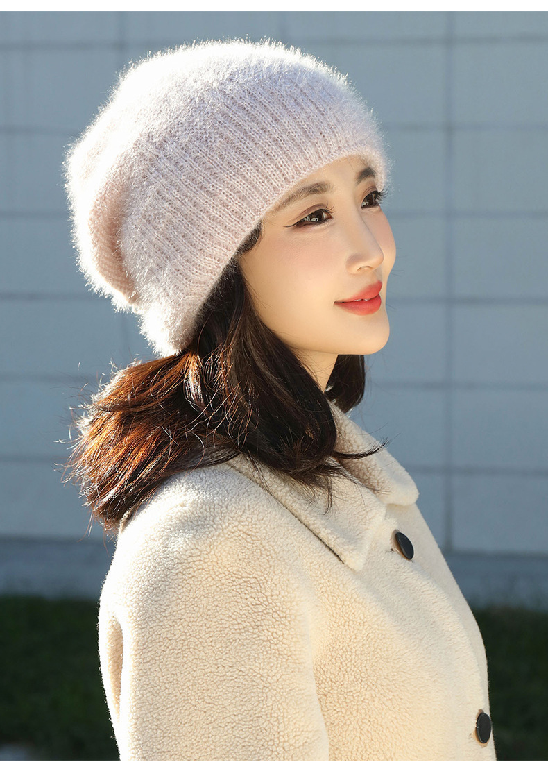 2025秋冬大头围加绒加厚针织毛线帽子双层保暖松鼠绒帽子堆堆帽