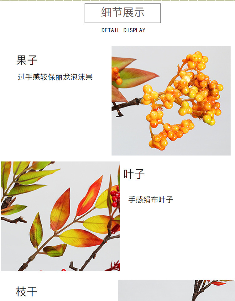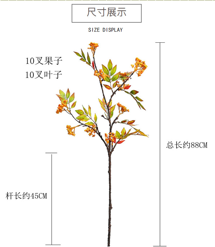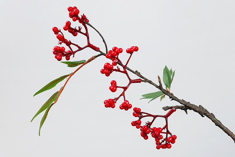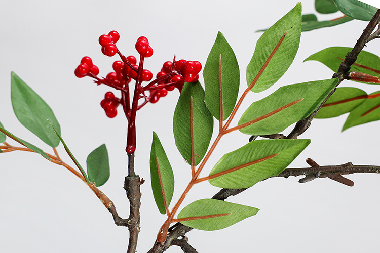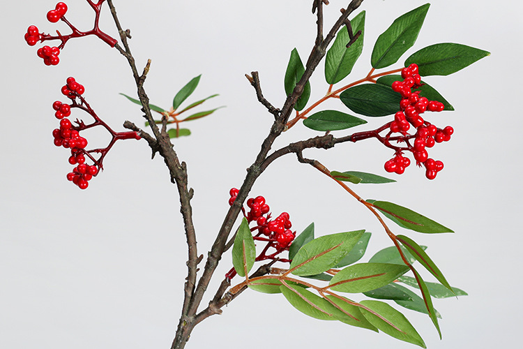擬似枝葉緑植緑葉紅果サンショウ枝サンゴ果枝家庭装飾ショーウインドーデパートに造花を配置する