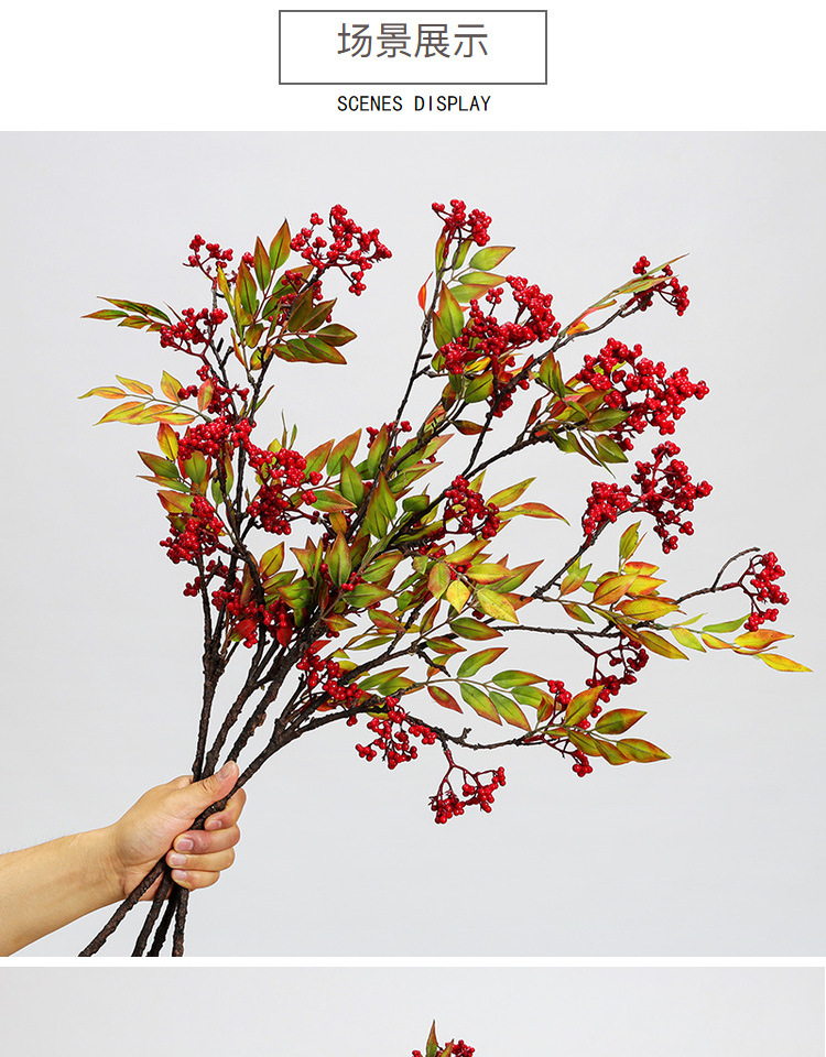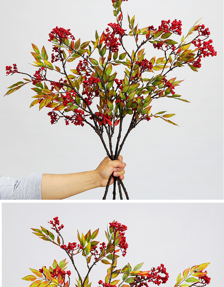 シミュレーション植物南天竹ベリー枝紅果冬青果ホームホテル見本間装飾結婚祝い撮影道具