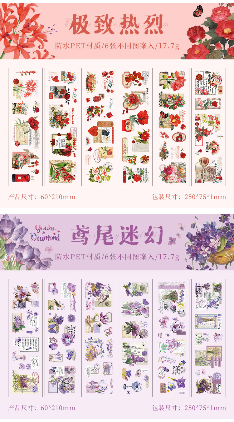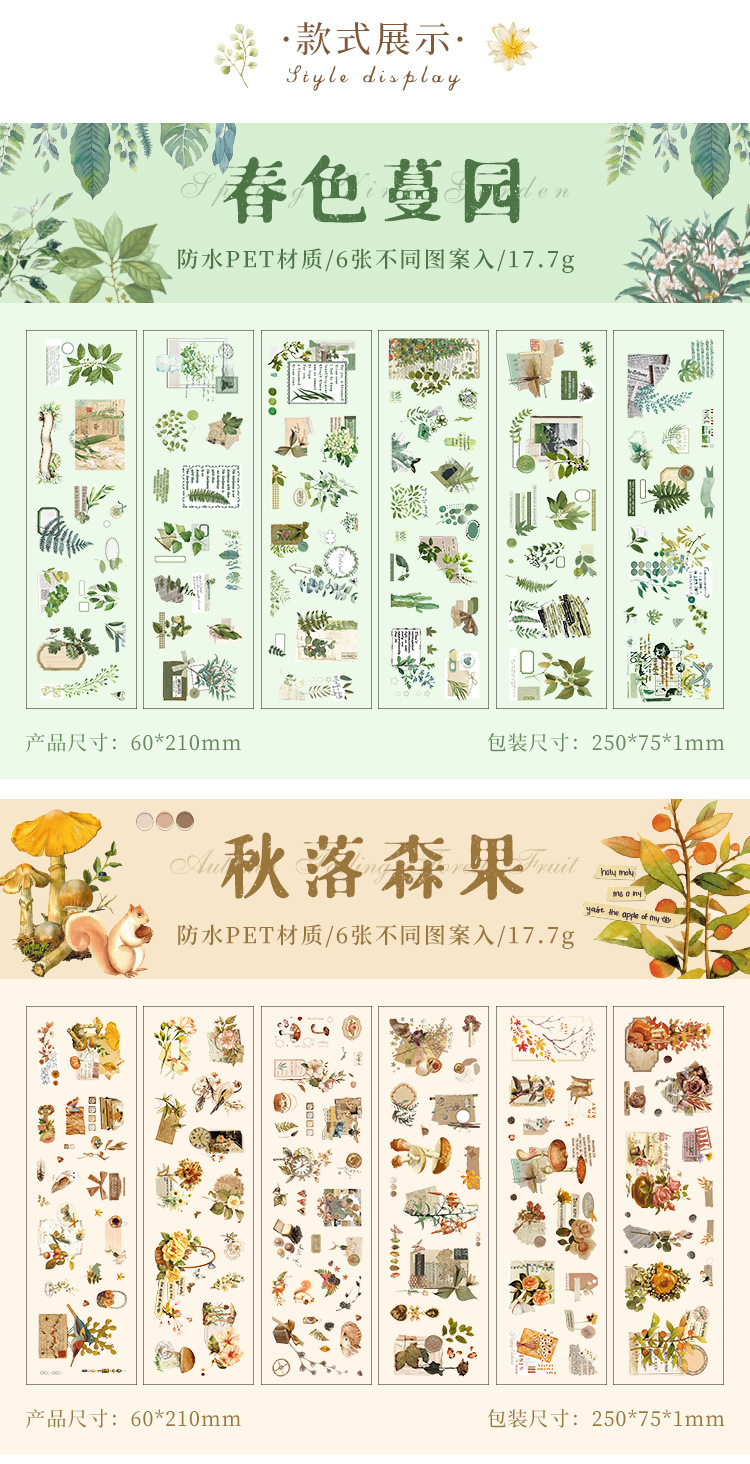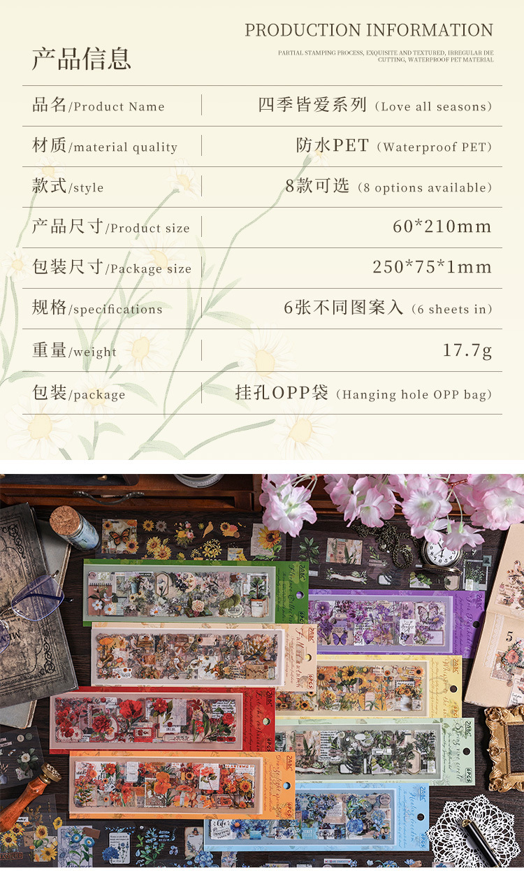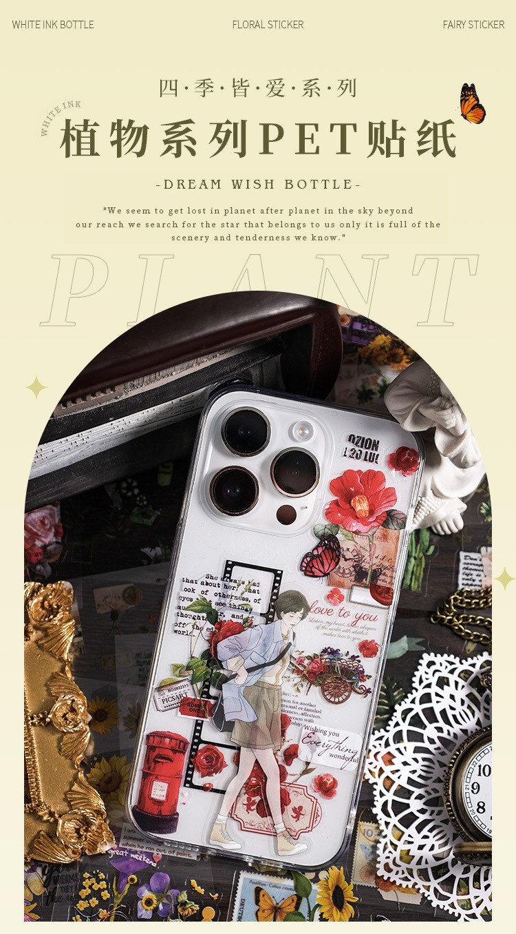悦詩四季皆愛シリーズ植物素材防水PET手帳シールDIYシールins手帳シールバッグ