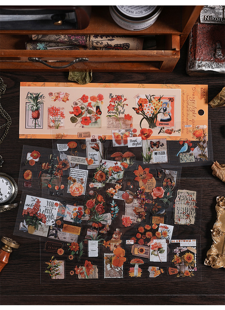 レトロレトロステッカークリエイティブ手帐ステッカー防水PVC高级アメリカンステッカー素材子供用ステッカーバッグ
