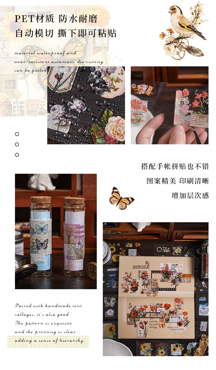 跨境专供新品浮世集册复古切膜贴纸 儿童手账素材diy贴画厂家批发