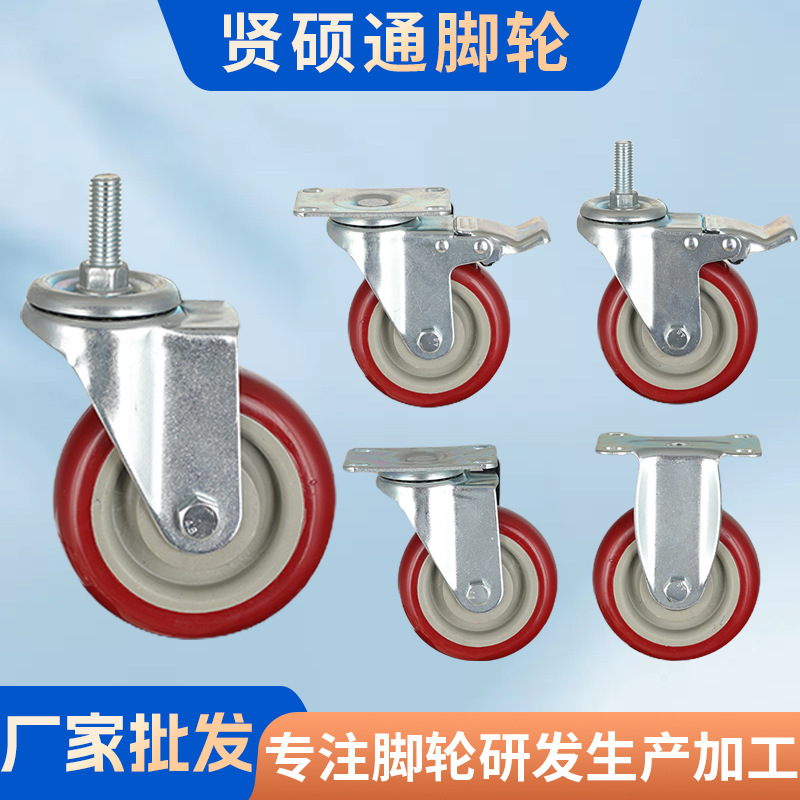 キャスター3インチ4インチ5インチ車輪手押し車キャスター食堂車清潔手押し車中型工業棗紅二軸pvc