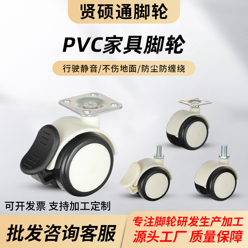2インチブラックホワイトpvc家具キャスターパソコンデスクホイール電子機器ホイールオフィスチェアユニバーサルホイール