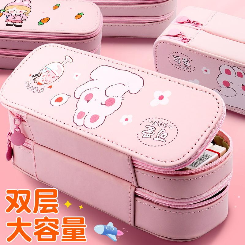 二重ペンバッグ女の子一年生高颜値大容量铅笔バッグかわいい子供铅笔ケース学生文房具ケース
