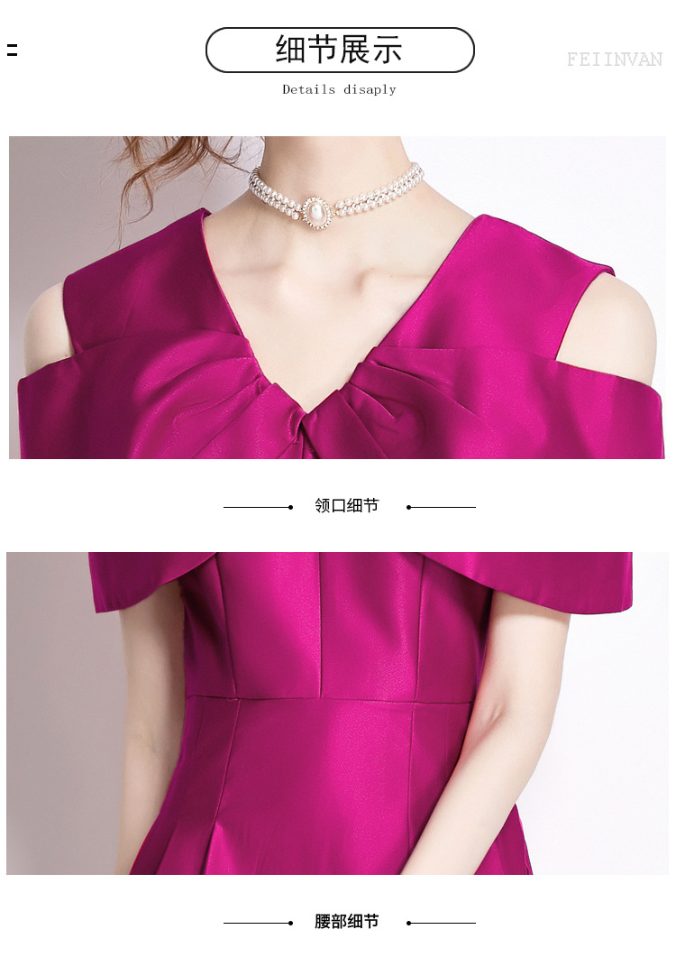 欧米の婦人服の優雅な気質は腰を収めて肩を露出して大きいワンピースの2024新型の名媛のファッションの洋風のイブニング・ドレスを並べます。