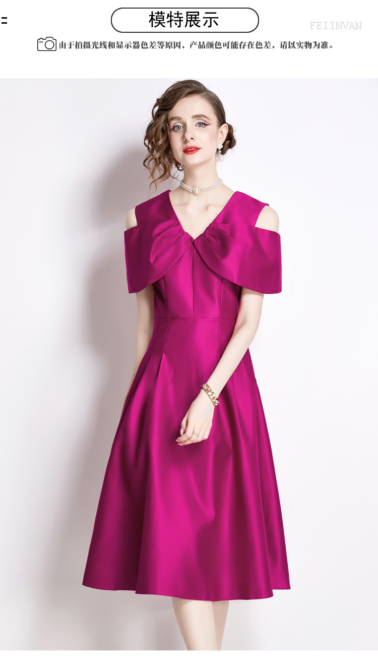 2025 秋と夏ベトナムニッチデザイン V ネック立体大きなリボン大きな裾ドレスドレス 1773