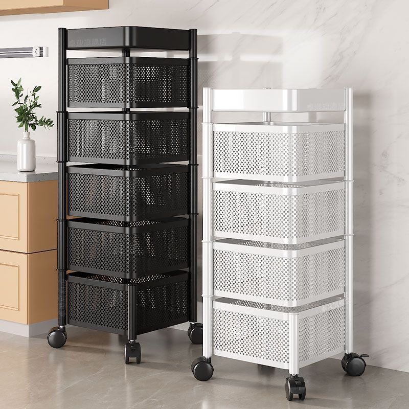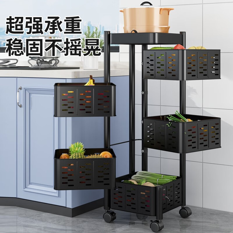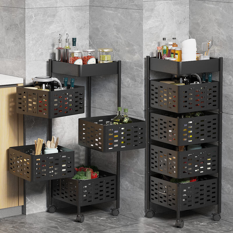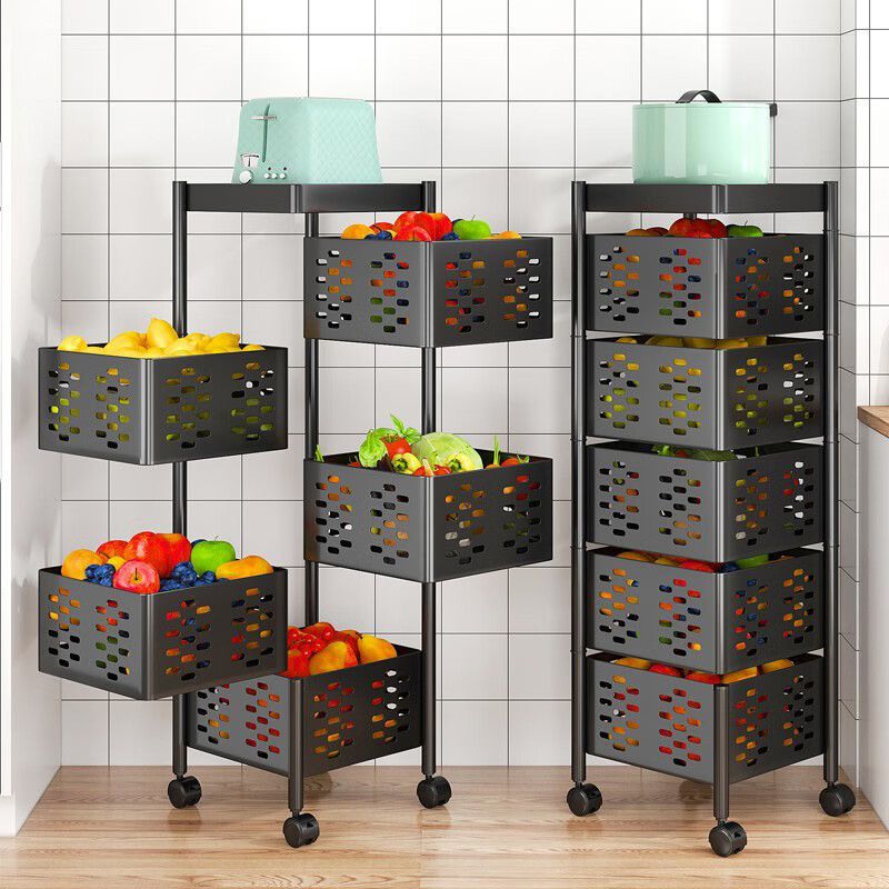 家用可旋转厨房置物架多层果蔬菜篮子收纳箱落地可移动方形储物架