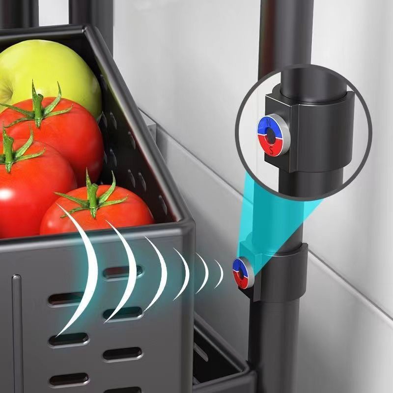 野菜収納ラック、回転式移動収納ラック、床置き多層隙間収納棚、雑貨野菜かご、磁気吸着