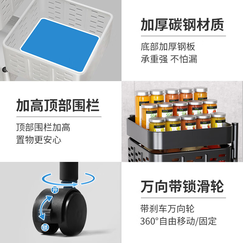 厨房旋转多功能置物架落地多层零食小推车带轮水果蔬菜篮子收纳架