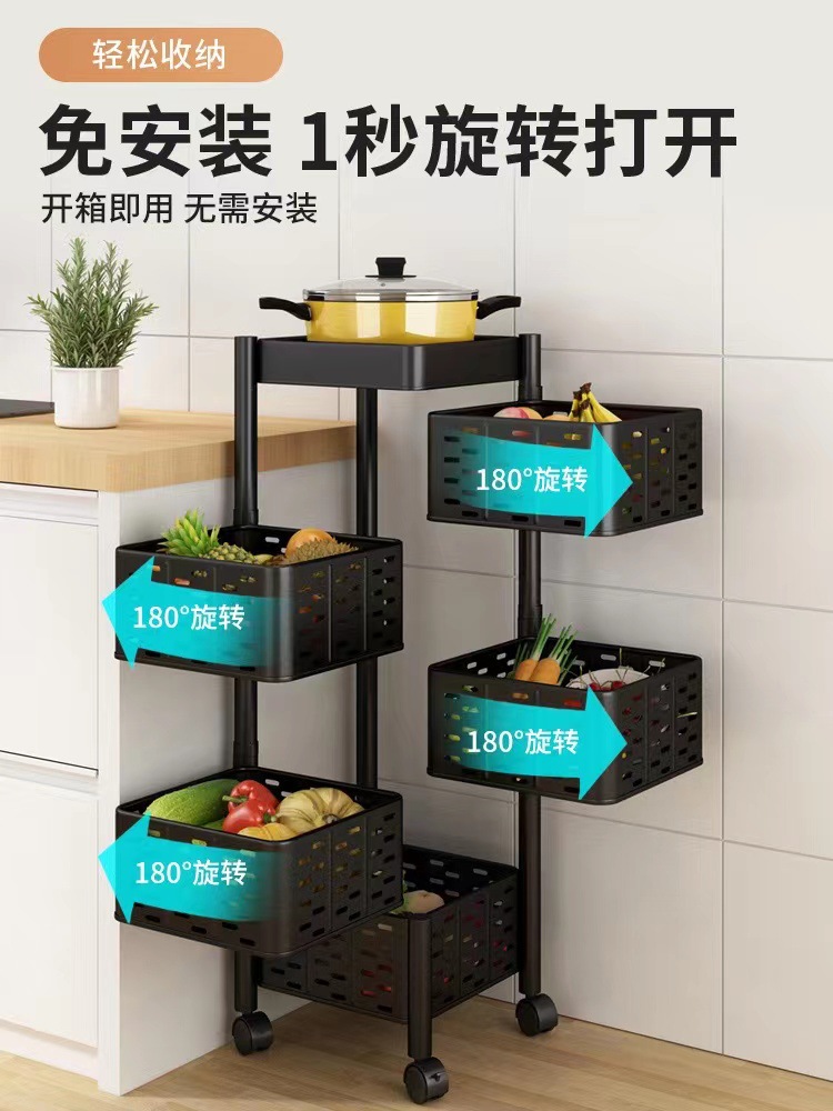 台所回転多機能棚家庭用床置き多層スナックカート果物野菜バスケット収納棚