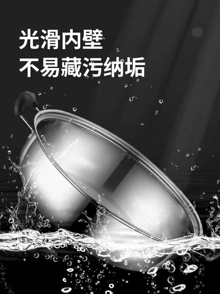 加厚清汤锅不锈钢火锅盆家用商用平底大口径汤锅电磁炉双耳火锅盆