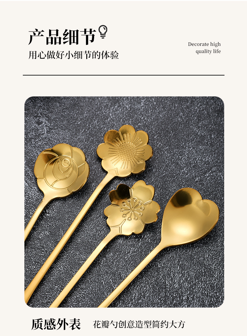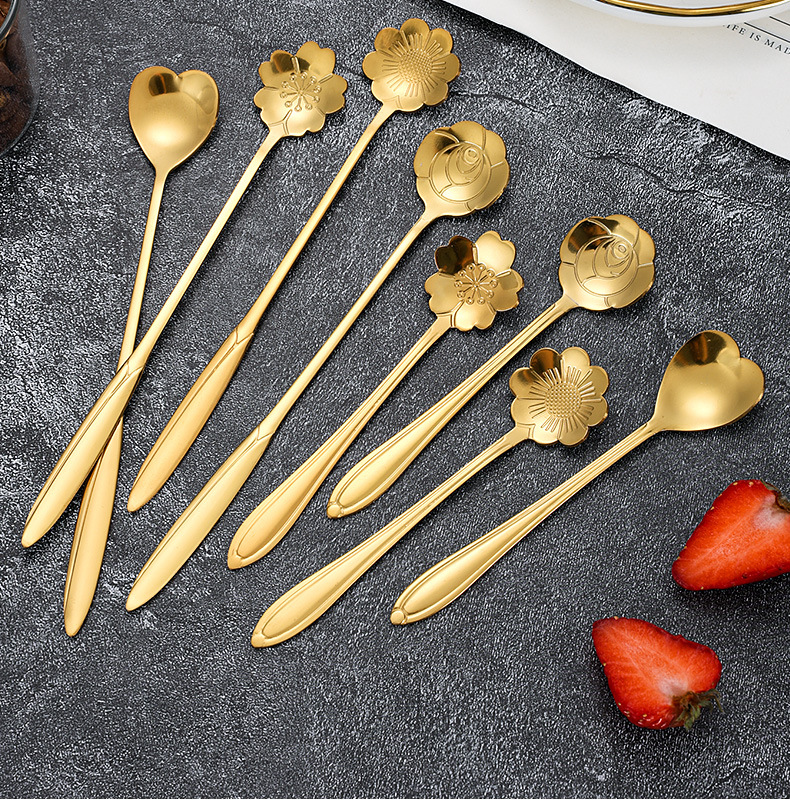 ステンレススプーン家庭用金色桜スプーン甘いスプーン創造コーヒー攪拌スプーン結婚お土産スプーン