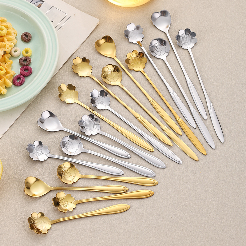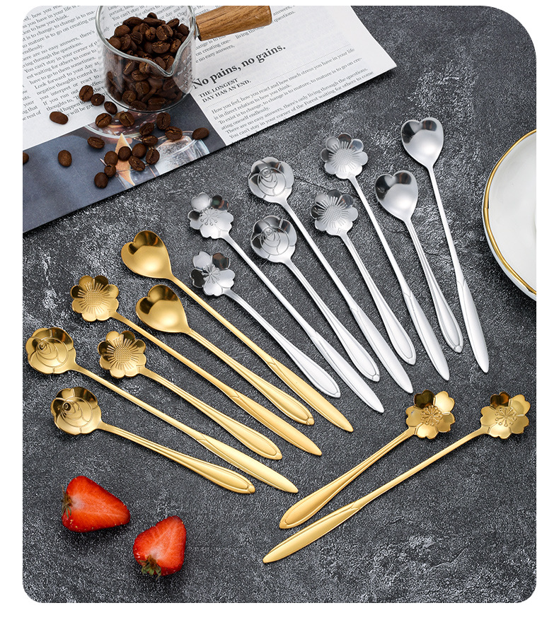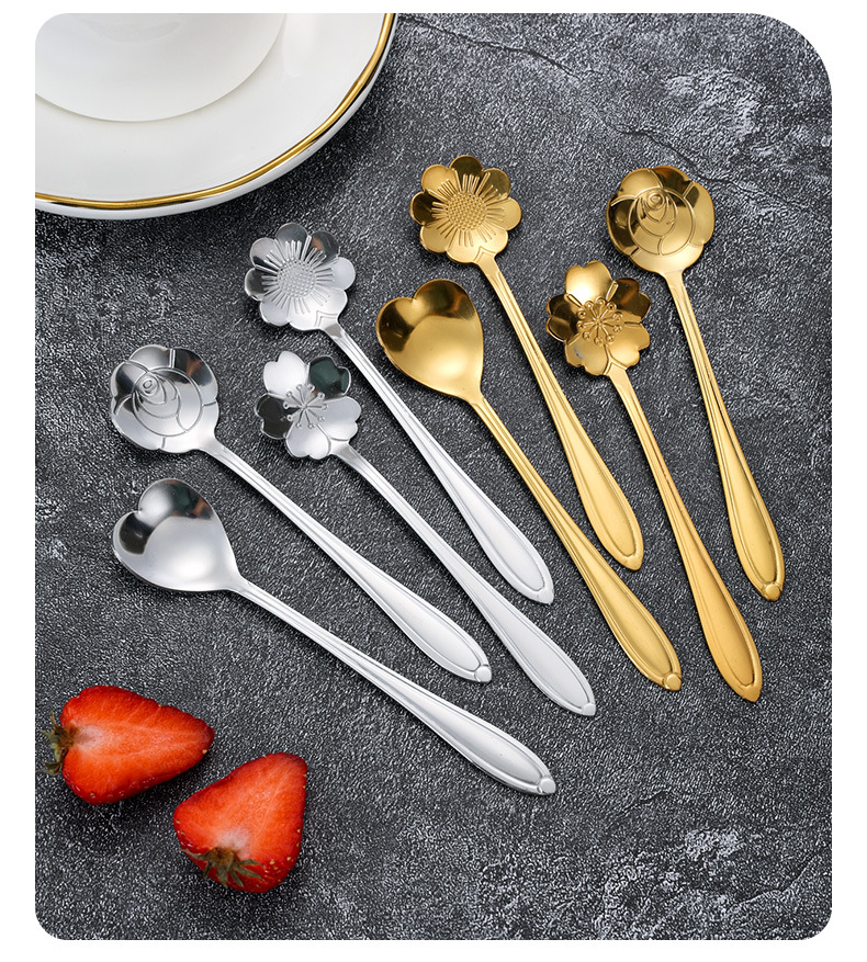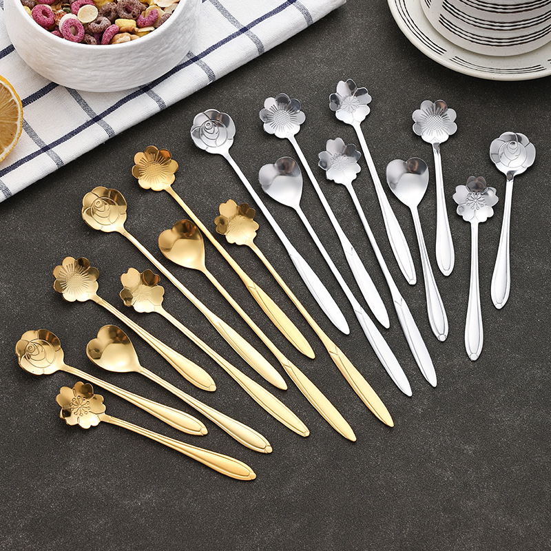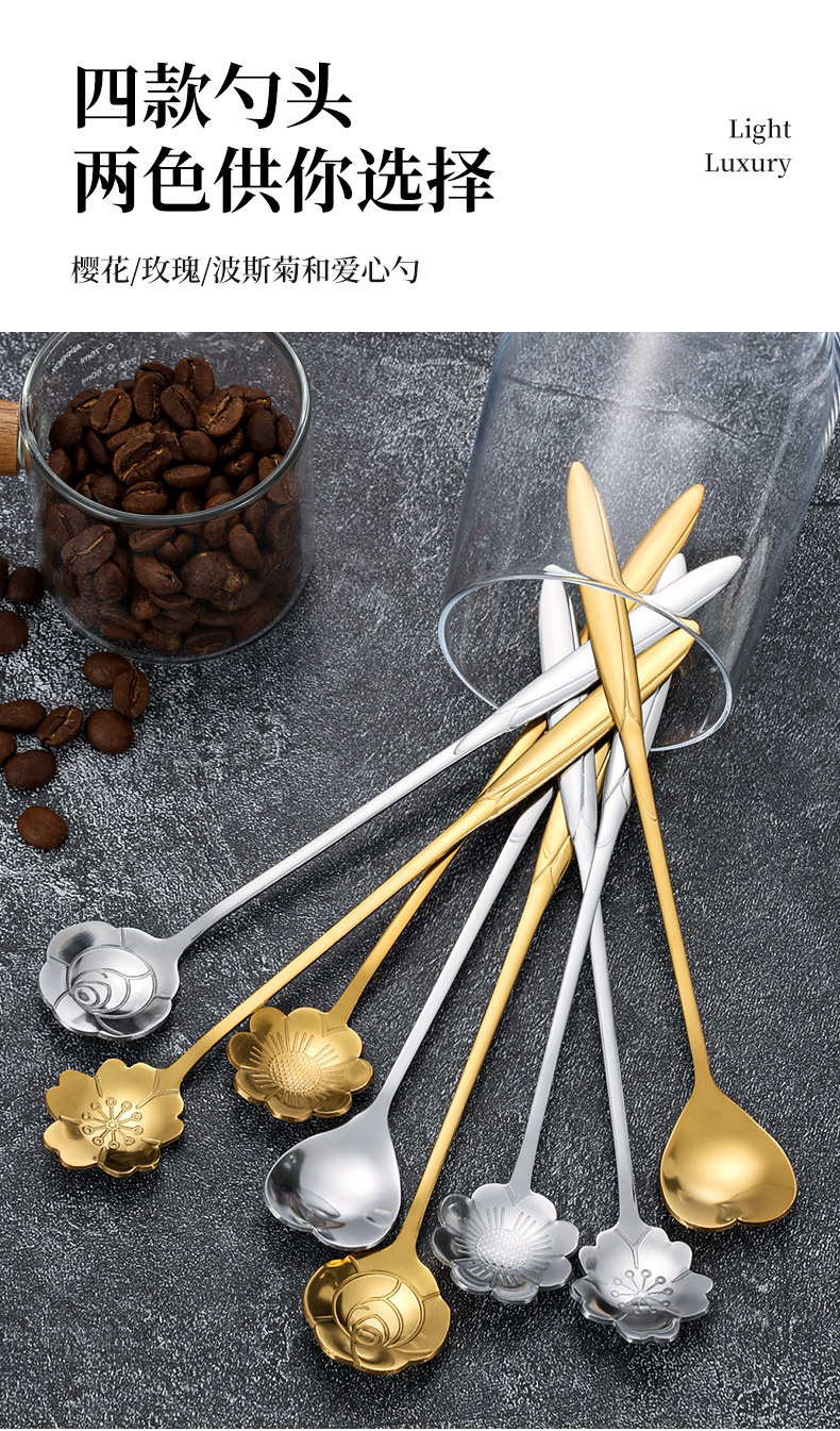 ステンレス花スプーン桜バラスプーン結婚式長柄ハートスプーンコーヒー攪拌スプーンお土産ツバメの巣蜂蜜