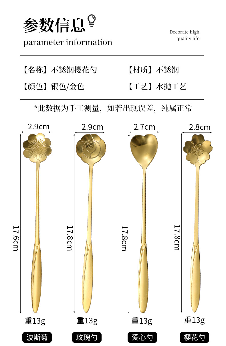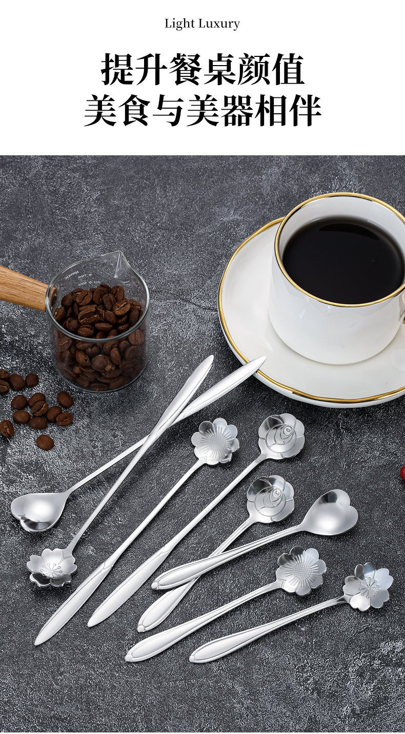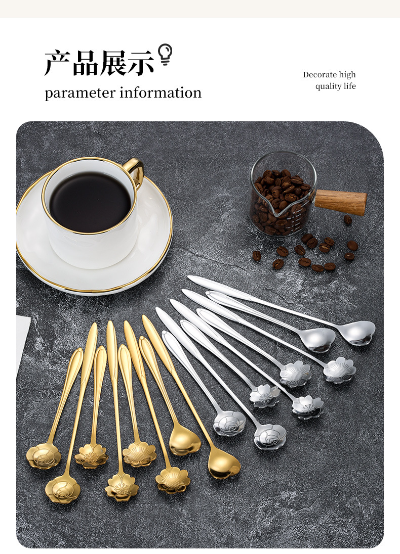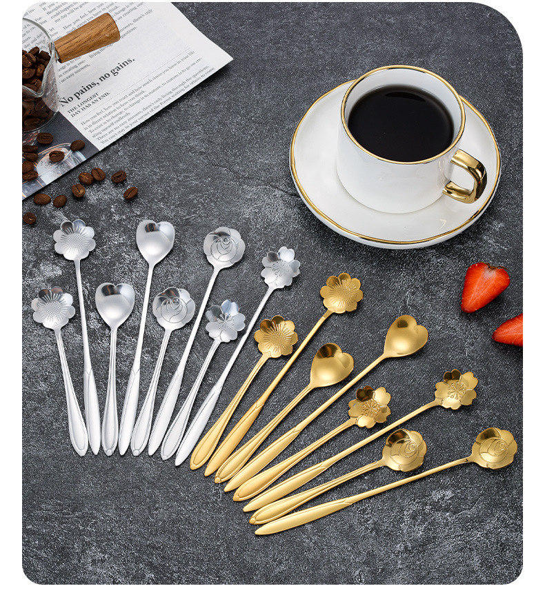 ステンレス花スプーン桜バラスプーン結婚式長柄ハートスプーンコーヒー攪拌スプーンお土産ツバメの巣蜂蜜