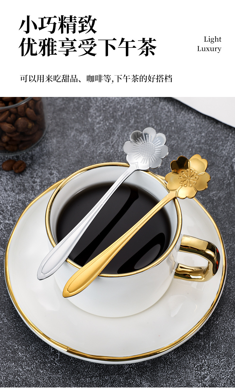 ステンレススプーンコーヒースプーン桜スプーン金色高颜値攪拌スプーンクリエイティブ燕窩ギフトスプーンお土産