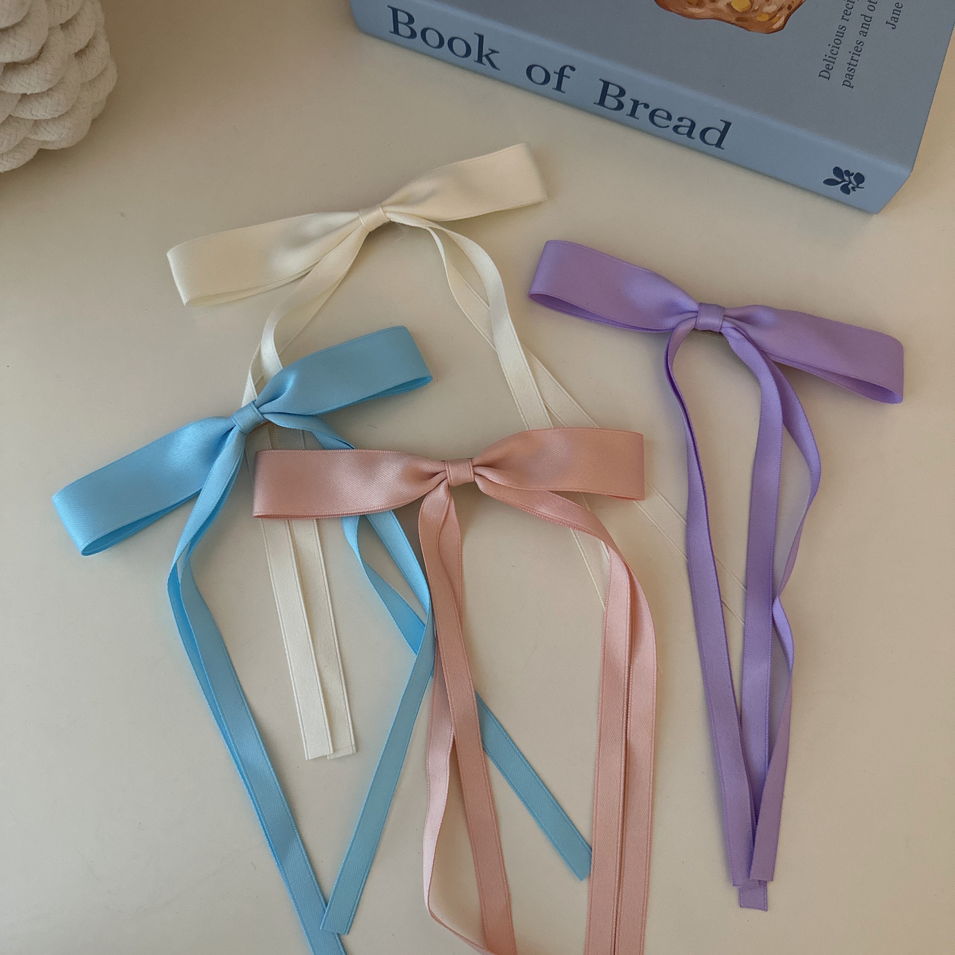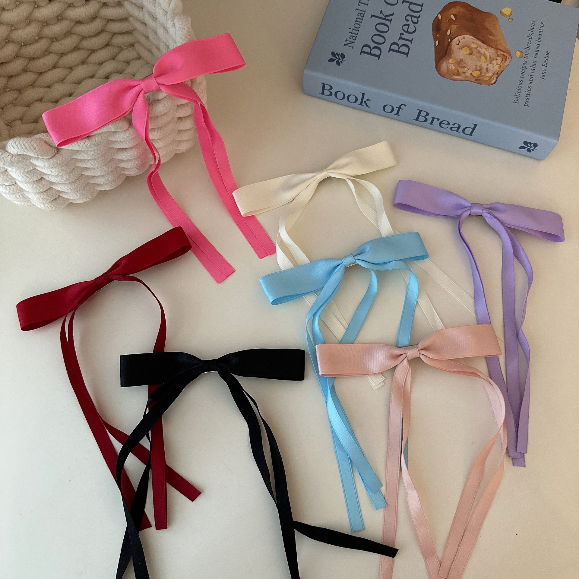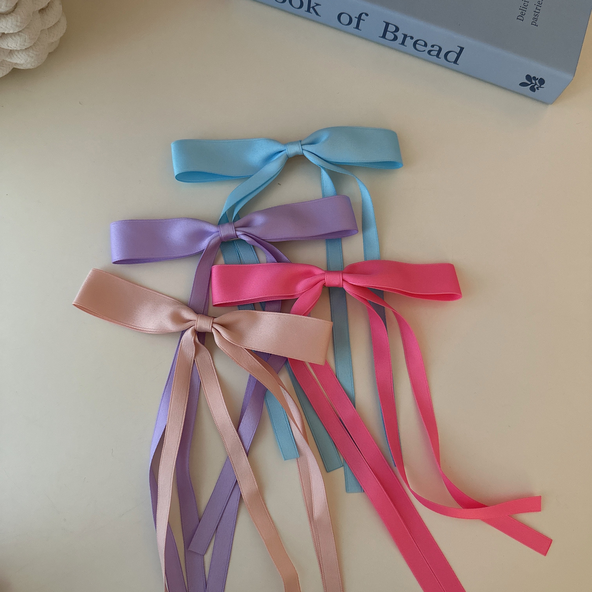 かわいい少女キャンディー色の長いリボンリボンinsバレエ風ヘアクリップアヒル口クリップ