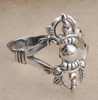 男女カップルの人差し指の中指の指輪の92の光沢のあるクロスの透かし彫りの泰銀の指輪の指の輪は代行します。