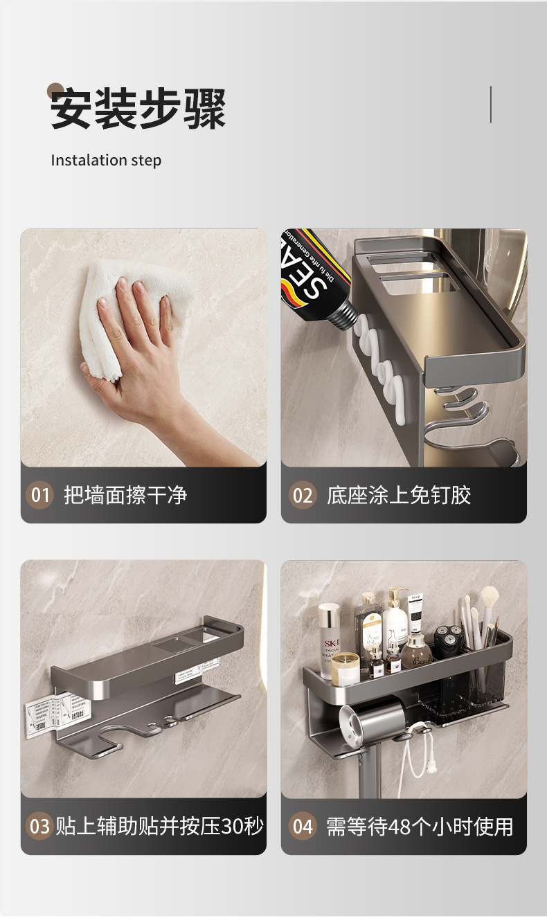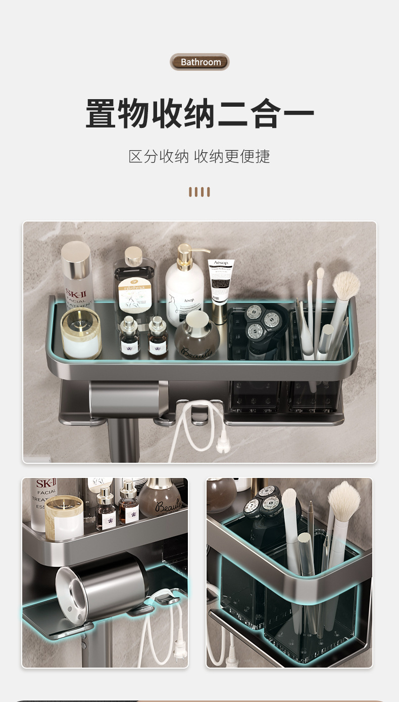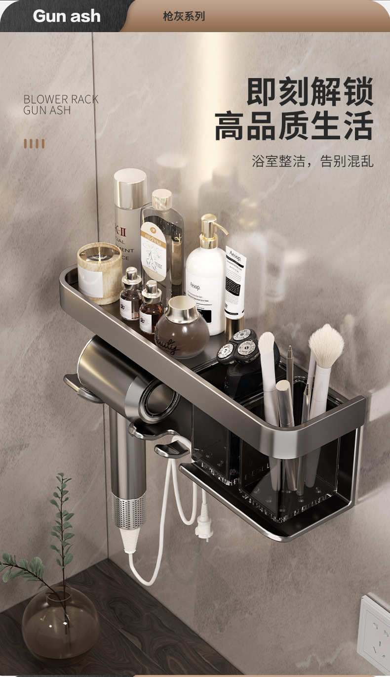 多機能ドライヤー一体式大容量収納壁掛け式穴なし収納桶宇宙アルミ浴室スタンド