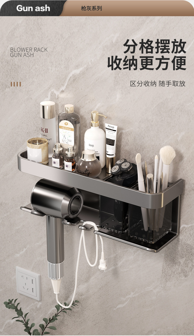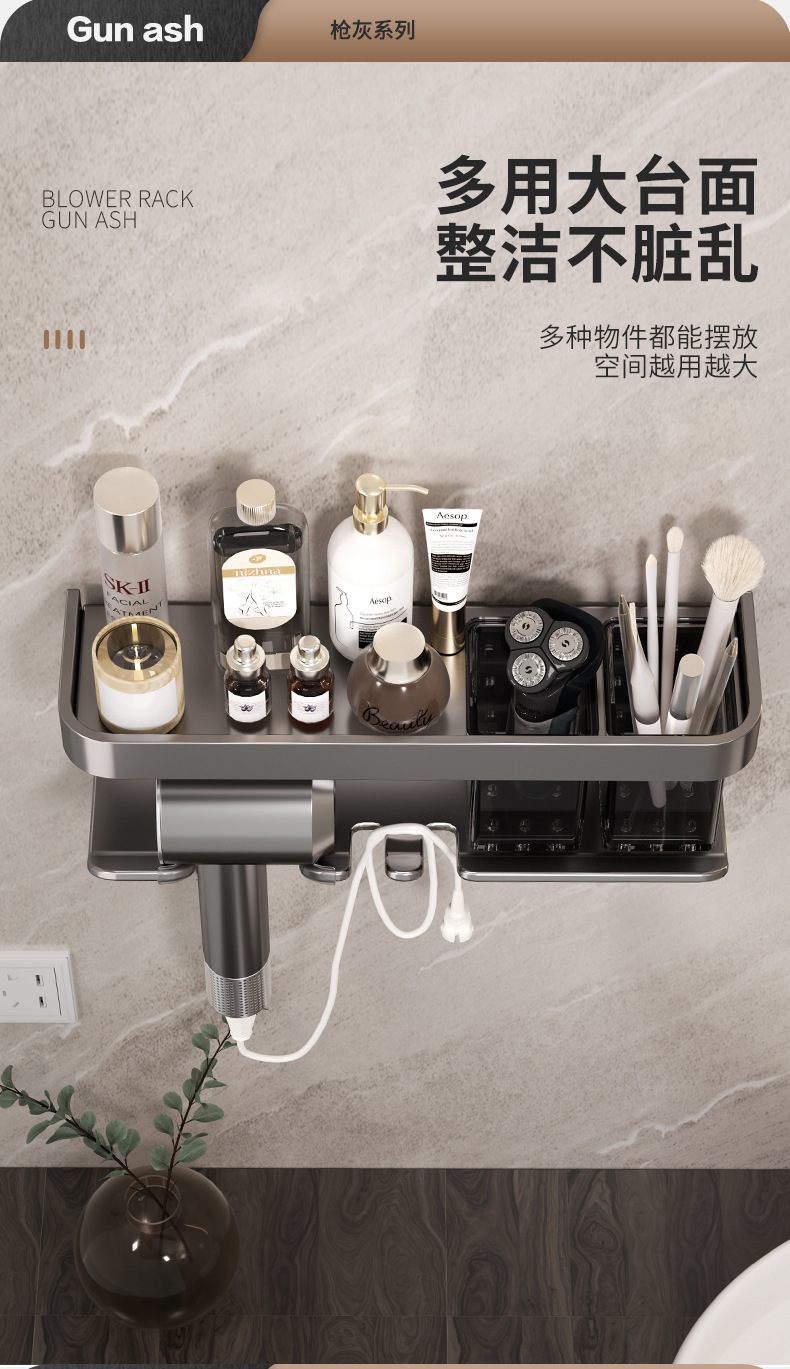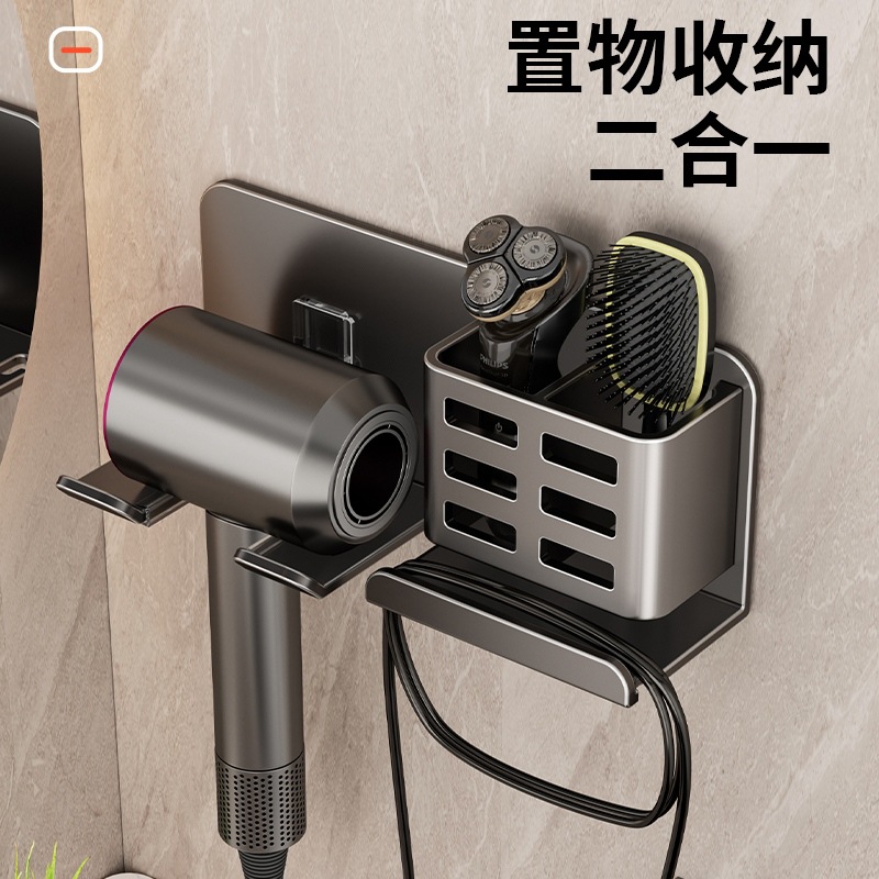 太空铝吹风机架浴室免打孔壁挂吹风机收纳挂架洗手间多功能置物架