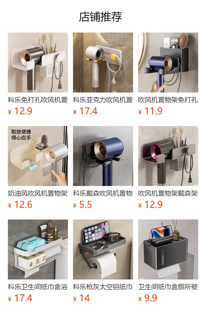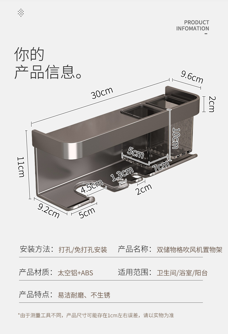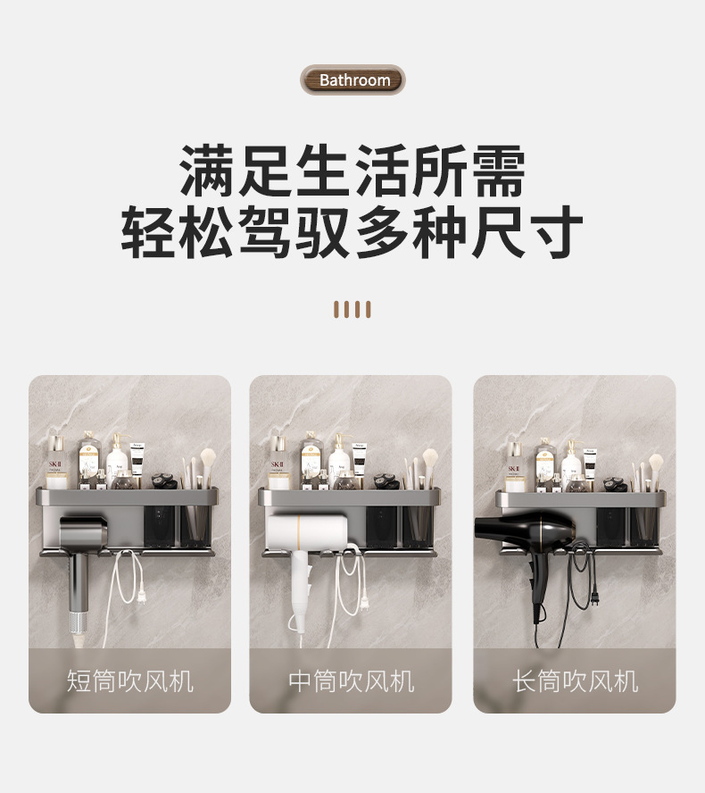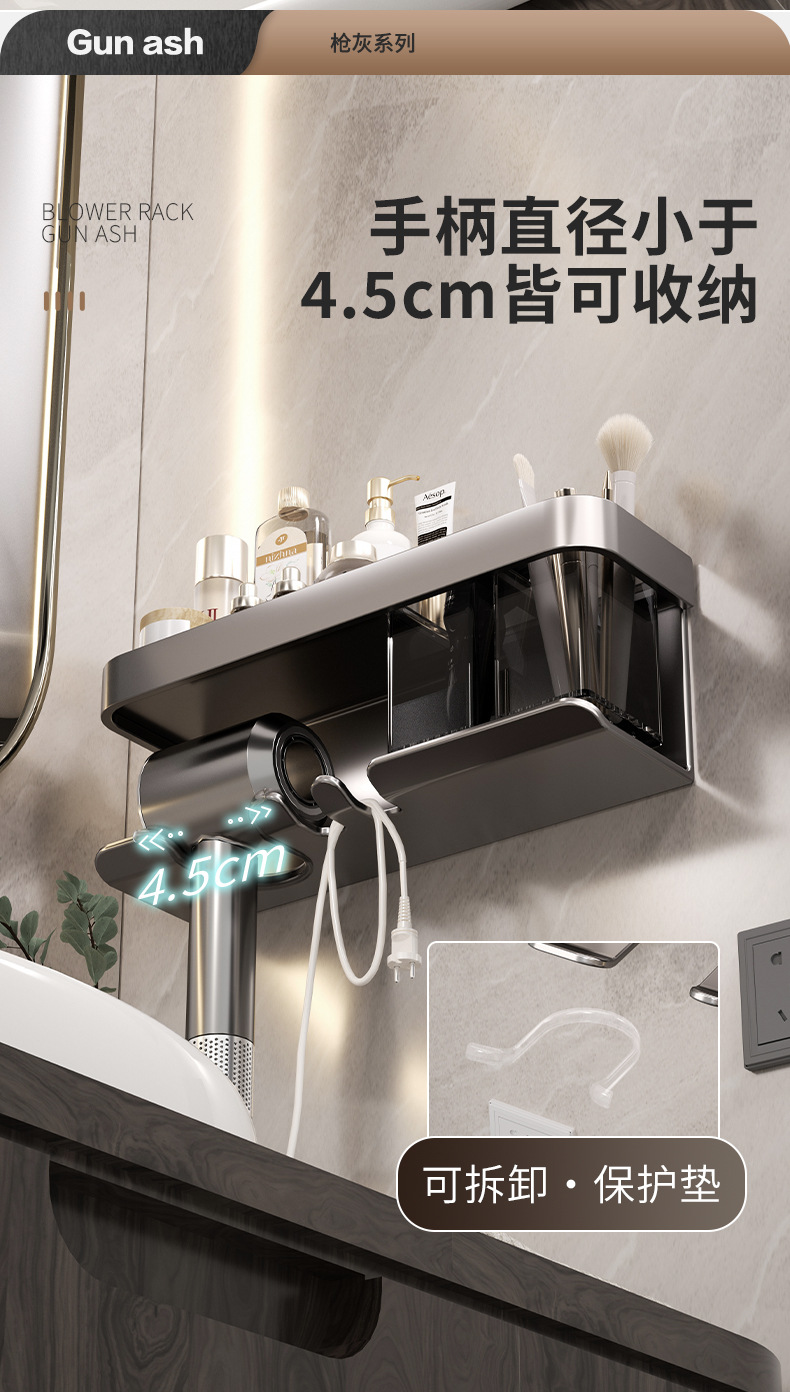 太空铝吹风机架浴室免打孔壁挂吹风机收纳挂架洗手间多功能置物架