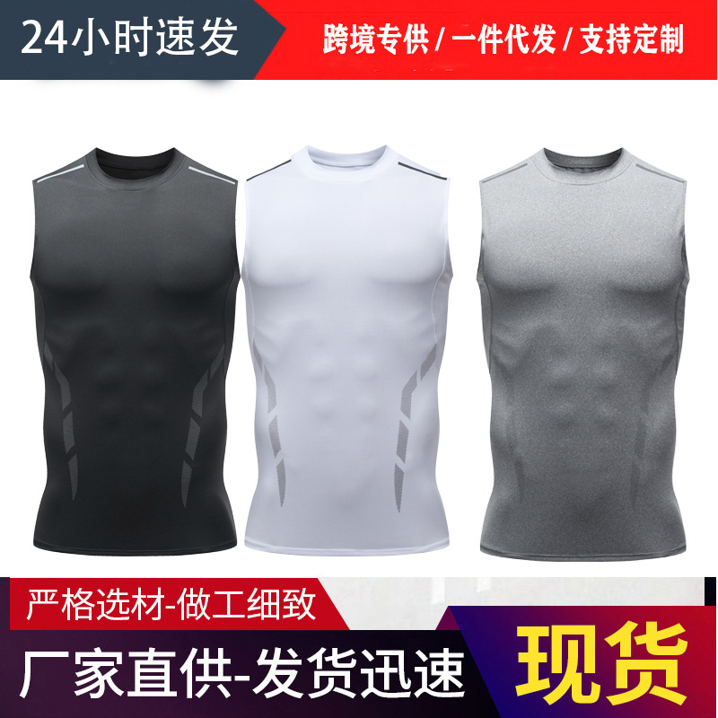 跨境速干健身背心男弹力透气训练运动无袖紧身衣跑步篮球打底衫