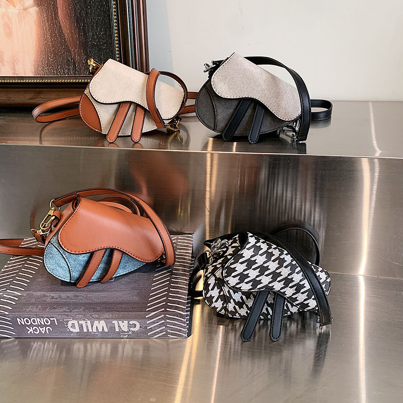 2025秋冬新作子供用バッグおしゃれ女の子外出用コントラストカラーサドルバッグベビーミニレトロ斜め掛けバッグ